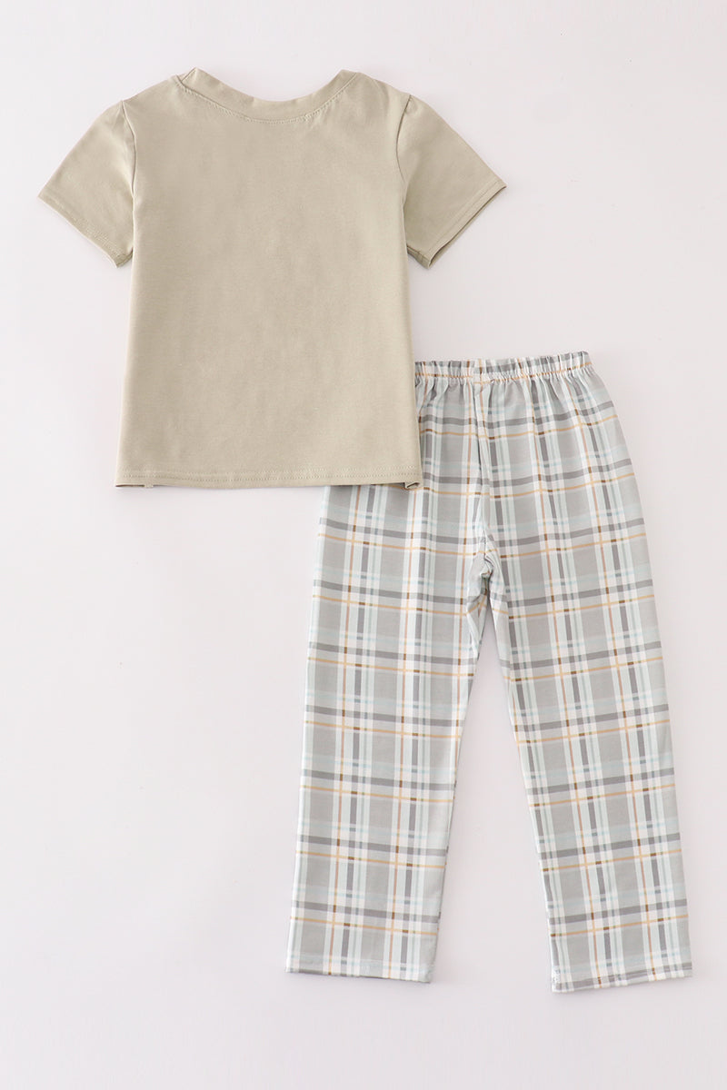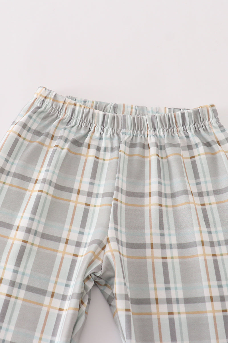 Get ready for fall with this Pumpkin French Knot Plaid Boy Set! Featuring a playful pumpkin design and classic plaid pattern, this set is perfect for any little boy. Stay stylish and cozy all season long.