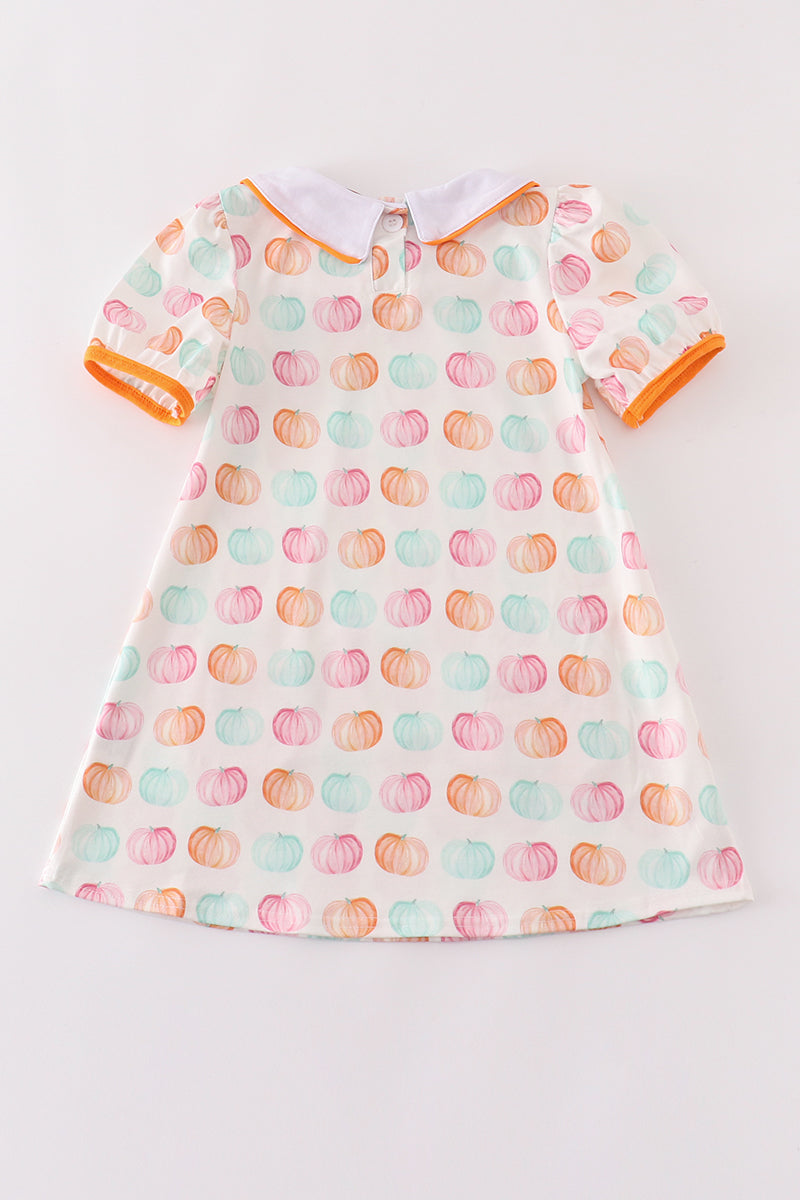 Pumpkin print girl dress