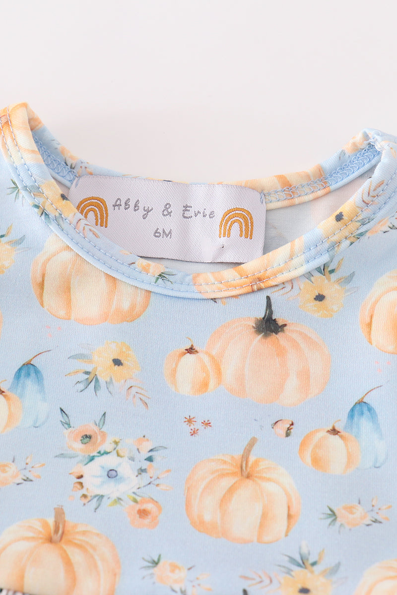 This adorable Pumpkin print ruffle girl bubble is a must-have for your little one's wardrobe. With its playful pumpkin print and charming ruffle details, your little girl will be the cutest pumpkin in the patch. Perfect for fall outings and Halloween, this bubble is sure to be a hit with both parents and kids alike.