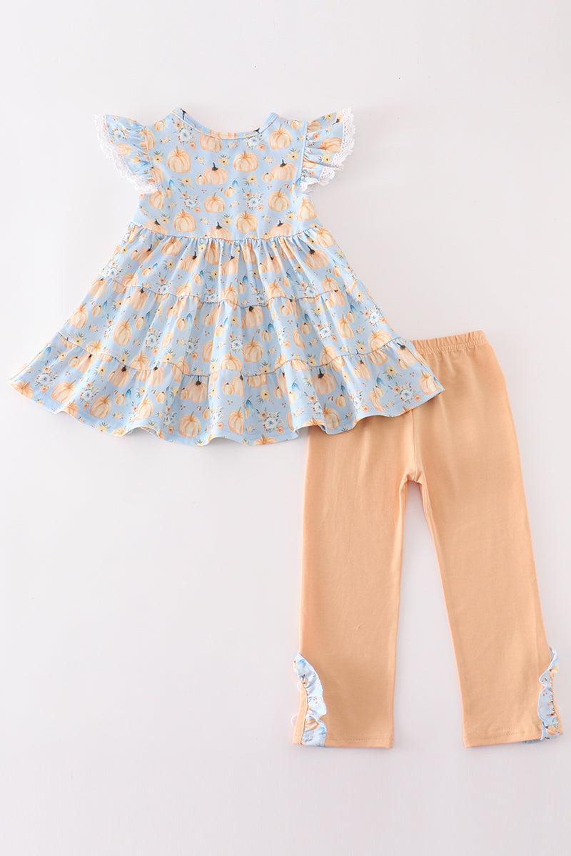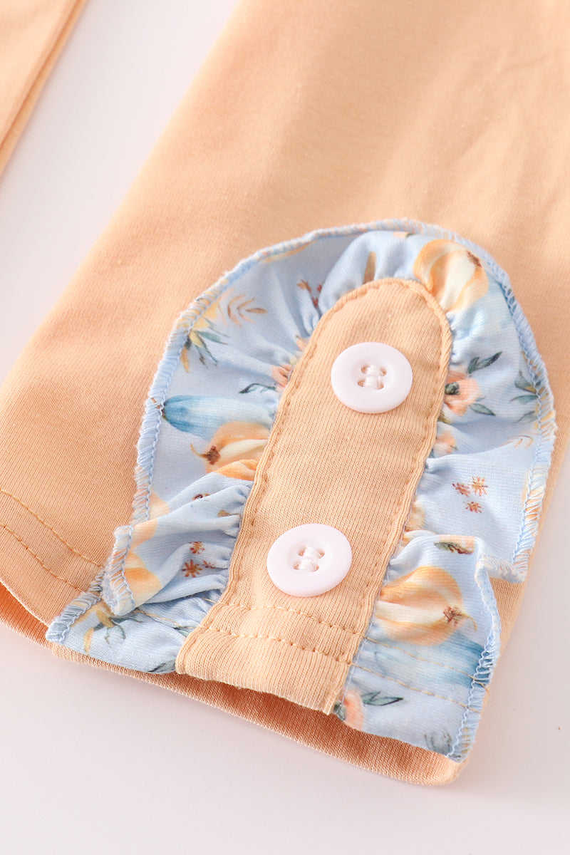 The perfect fall ensemble for your little pumpkin! This delightful set features a fun pumpkin print and charming ruffle details. Get ready to pumpkin spice up your child's wardrobe with this playful outfit. (And yes, it comes in adult sizes too!)