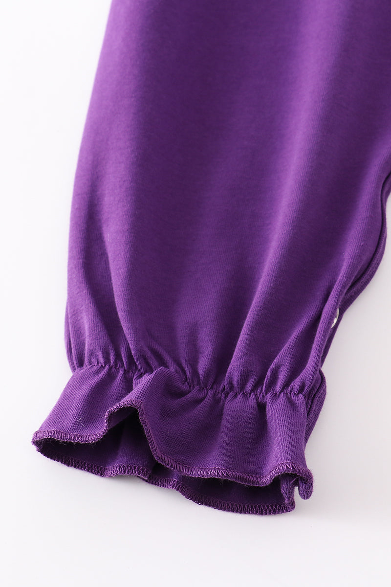 Show off your little fashionista in this playful Puprle go tigers embroidery girl romper. With a quirky embroidered design and comfortable fit, this romper is perfect for playdates or lounging at home. Go tigers, go!