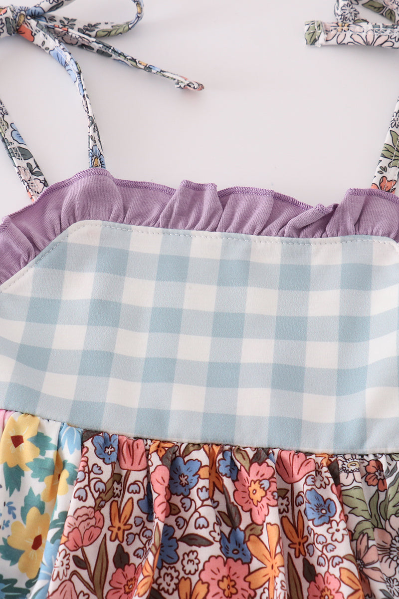 Flower power meets playful ruffles in this vibrant purple dress. Perfect for your little girl's wardrobe, the eye-catching floral print adds a touch of whimsy while the ruffles add a fun and flirty flair. Let your child's personality shine in this unique dress!