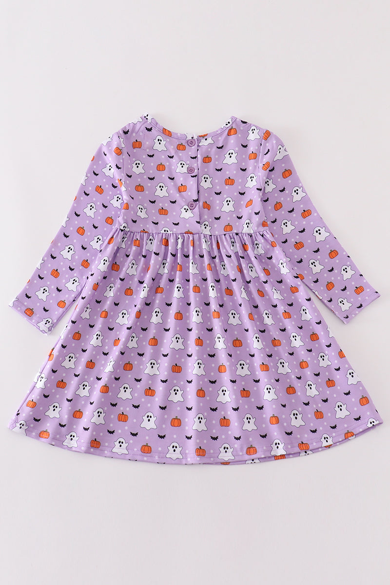 Get in the spooky spirit with this eye-catching, purple halloween print dress. Show off your playful side and stand out from the crowd with this unique dress. Perfect for any halloween party or costume event. (No guarantees on scaring away ghosts.)