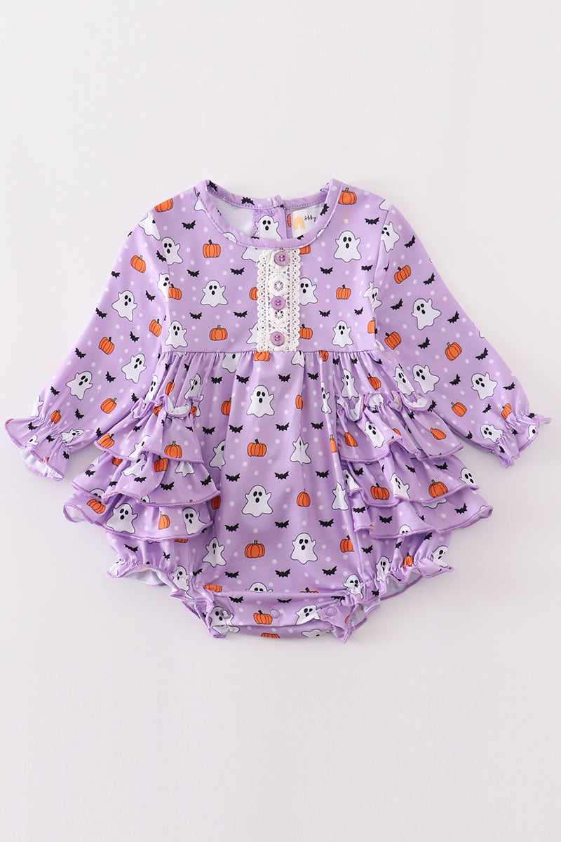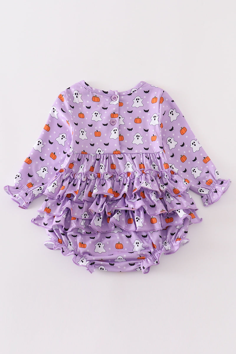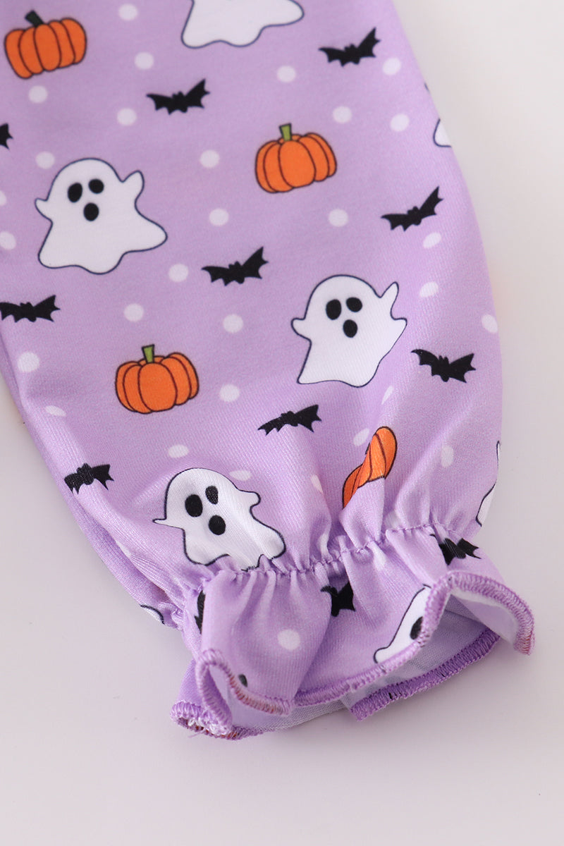 Boo-tifully dress your little ghoul in our Purple Halloween Print Girl Bubble! This playful bubble features a spooky print and vibrant purple color, perfect for trick-or-treating. Keep your little one cute and comfy with this quirky and fun outfit!