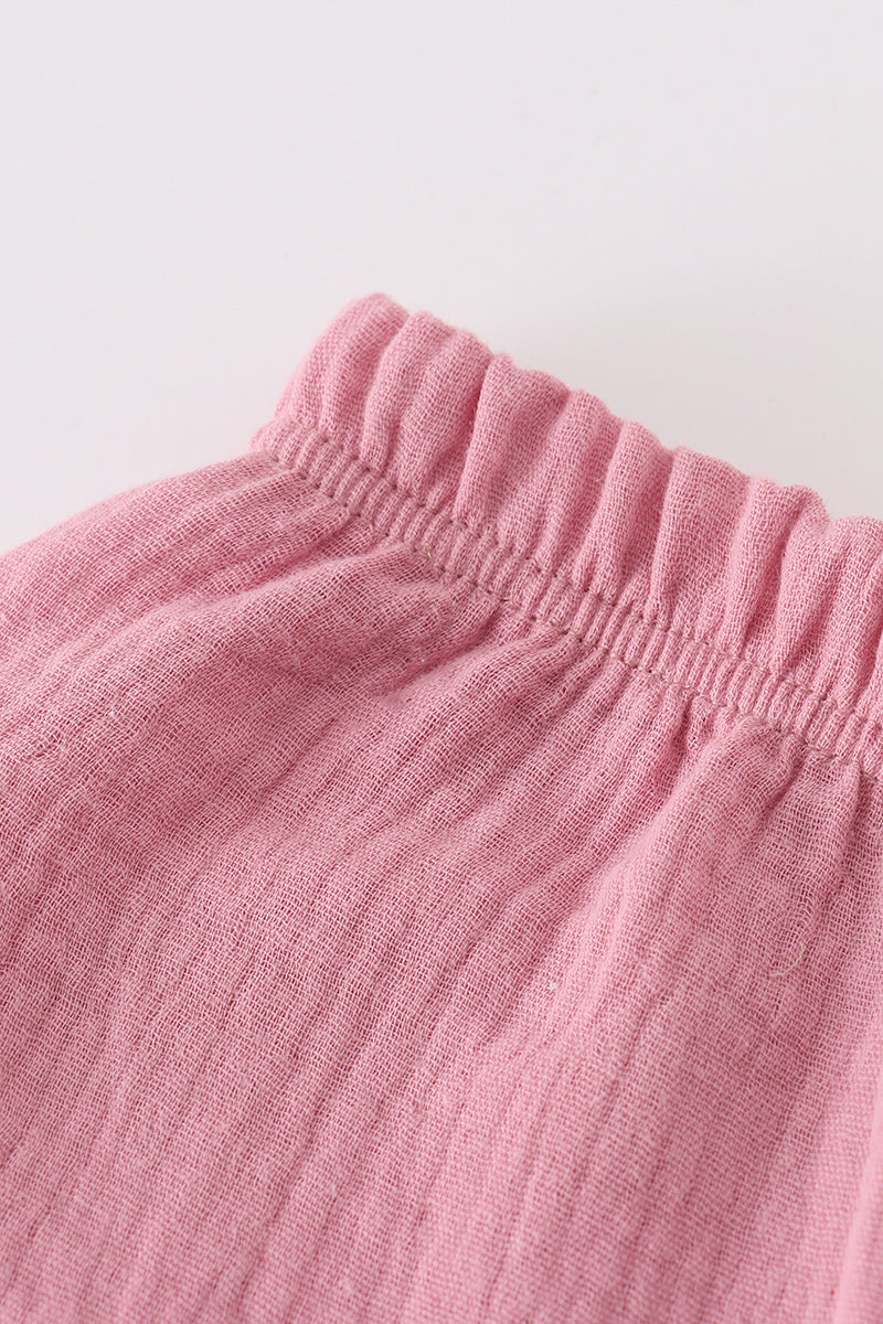 Get ready to ruffle some feathers (sorry, we meant shorts) with this playful and stylish purple muslin ruffle shorts set. Made with lightweight and breathable fabric, these shorts are perfect for a day of fun in the sun. Bring out your playful side with this unique and fun outfit!