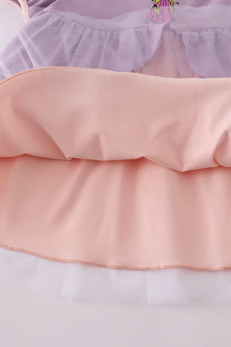 Purple princess embroidery ruffle dress