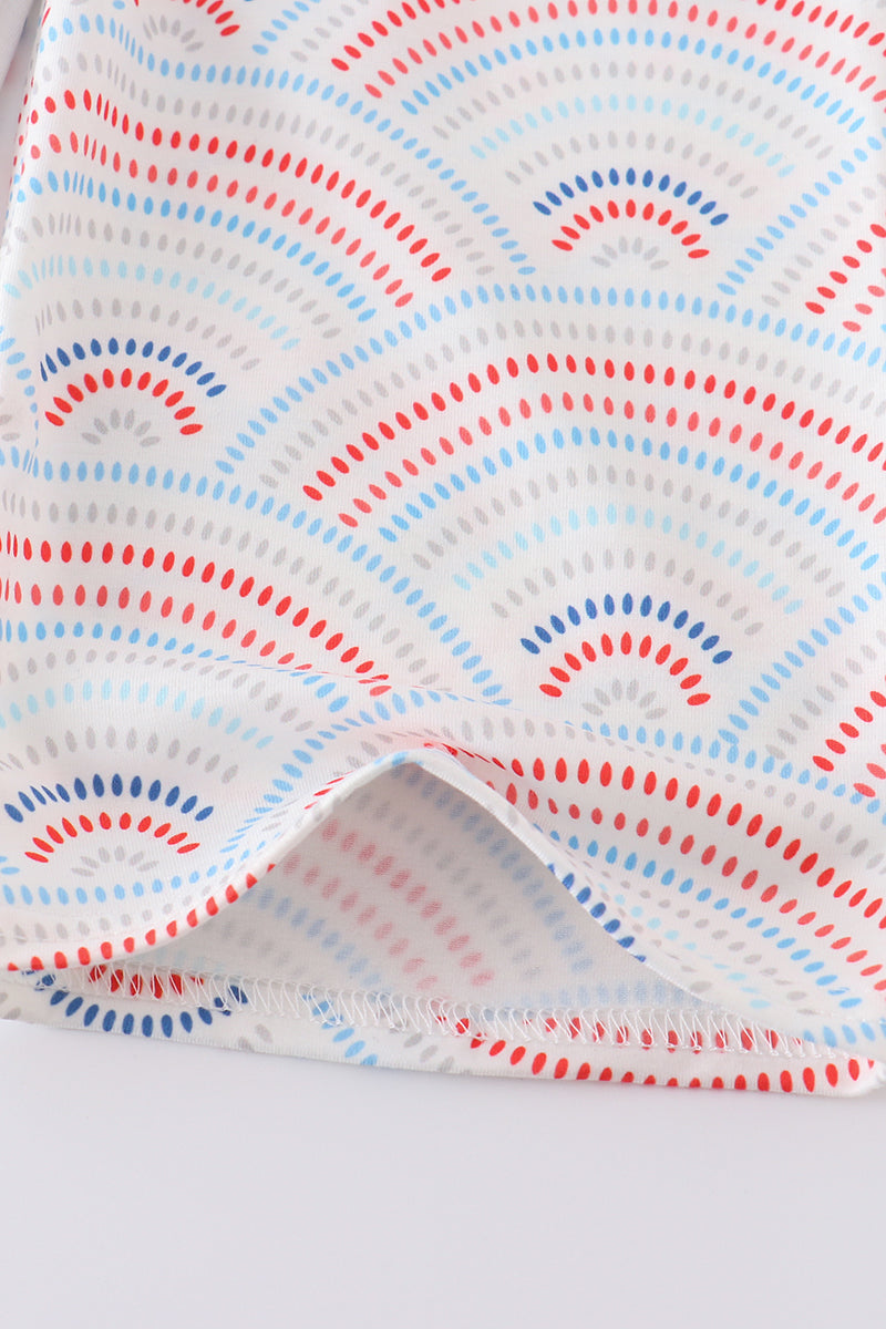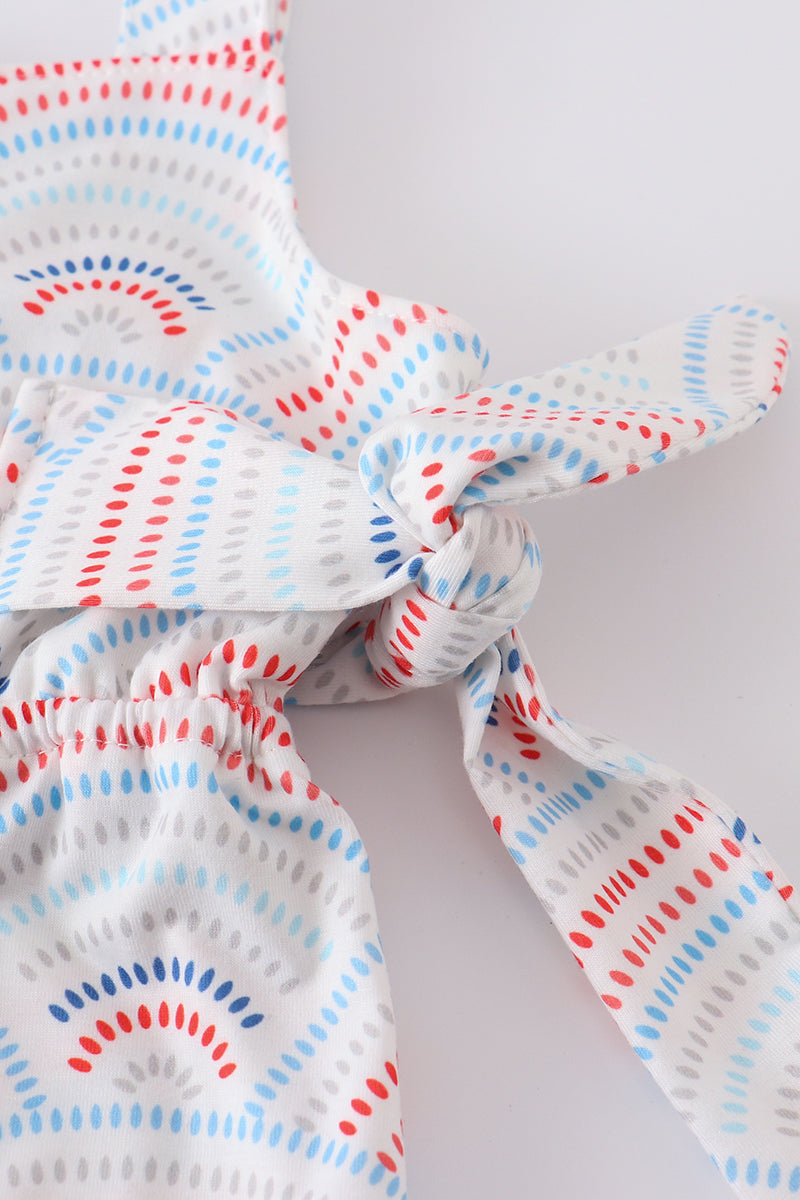 "Unleash your child's vibrant style with our Rainbow Print Girl Jumpsuit. Featuring a colorful rainbow print, this jumpsuit is perfect for any occasion. Brighten up their wardrobe with this playful and fun addition. (Rainbows not included) "