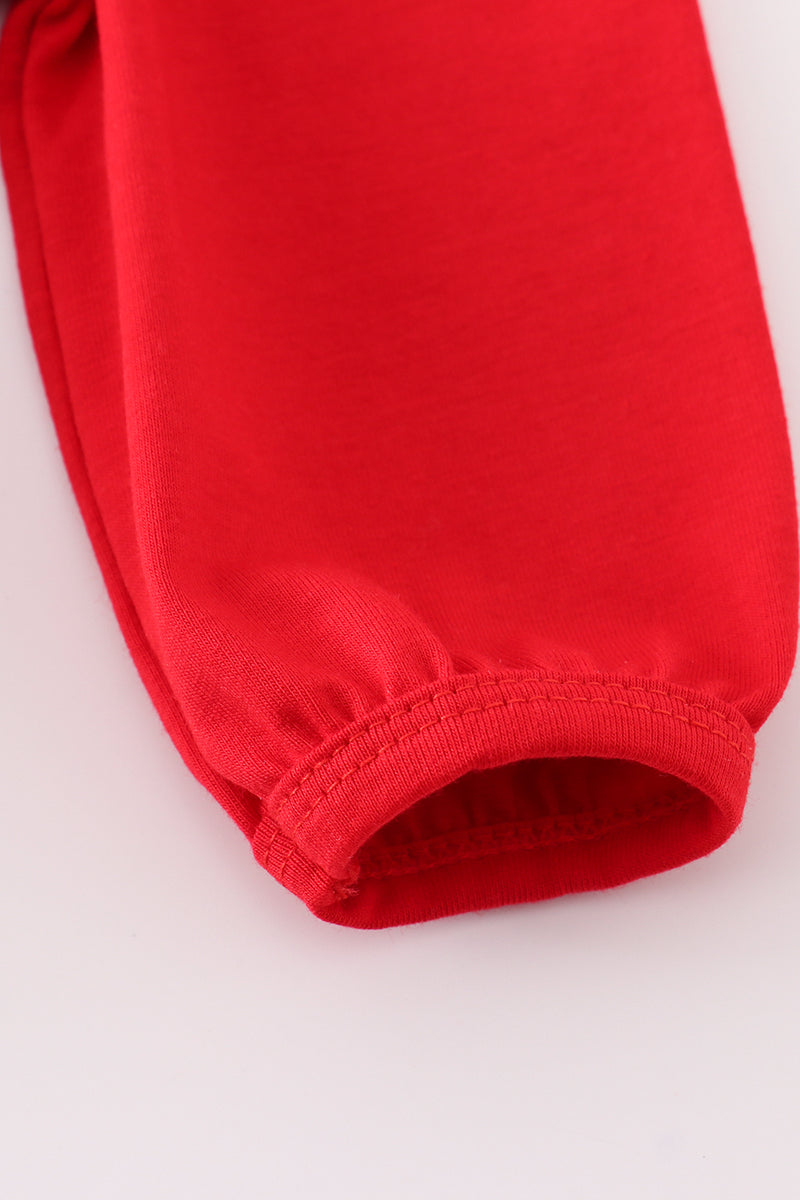 Get ready to spread holiday cheer with this adorable Red Christmas Gingerbread Embroidery Girl Bubble! Nothing says festive like gingerbread and this charming bubble dress features embroidered gingerbread accents, perfect for your little one's holiday gatherings. Plus, the classic red color adds a pop of Christmas spirit! Ho ho ho!