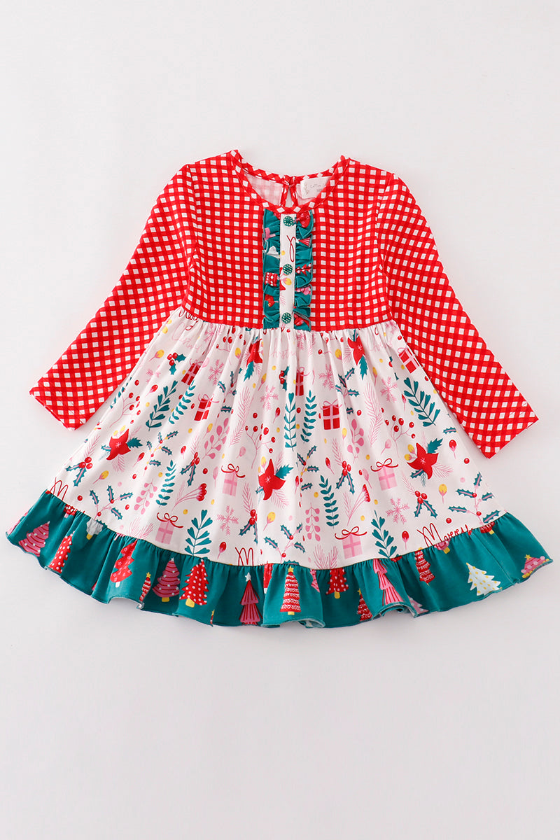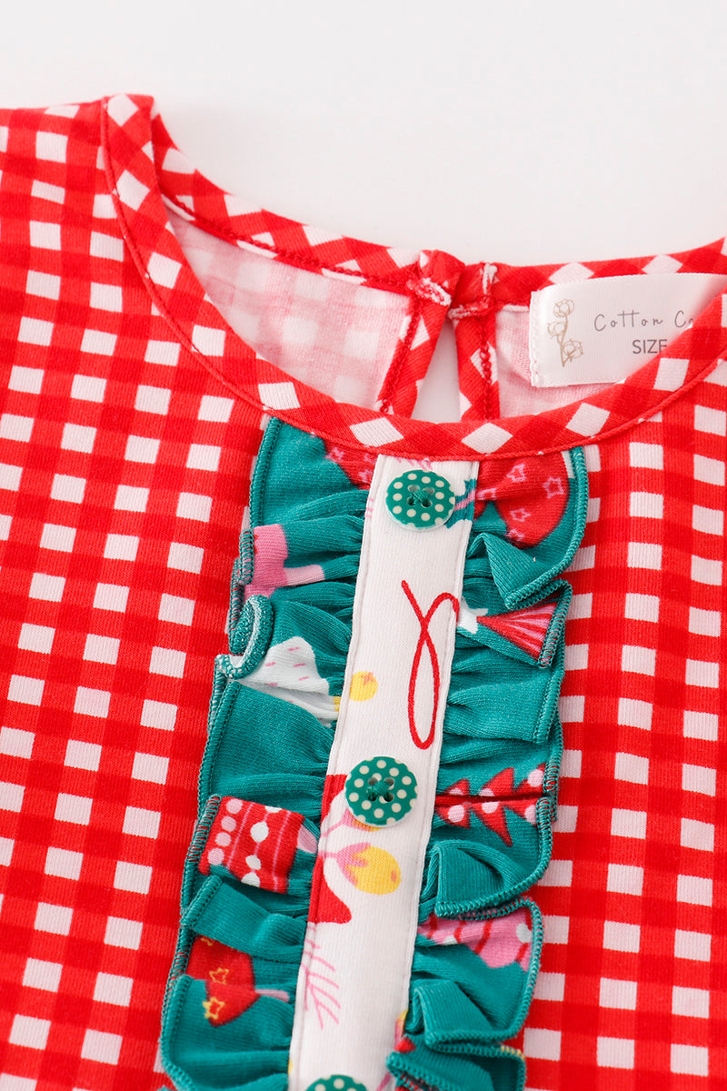 Get festive this holiday season with our Red Christmas Plaid Ruffle Dress! The vibrant red plaid brings a touch of cheer while the ruffle adds a playful flair. Perfect for any holiday party or event. (Don't be a scrooge, add this dress to your wardrobe today!)