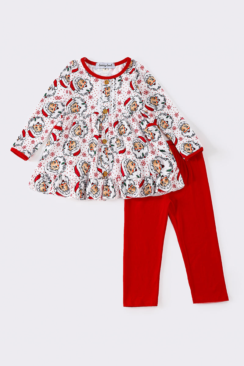 Get ready for some festive fun with our red Christmas Santa girl pants set! Make your little one stand out in this quirky and playful outfit that'll surely spread some holiday cheer. Perfect for family gatherings and holiday photos, this set is guaranteed to bring a smile to everyone's face. Ho ho ho!
