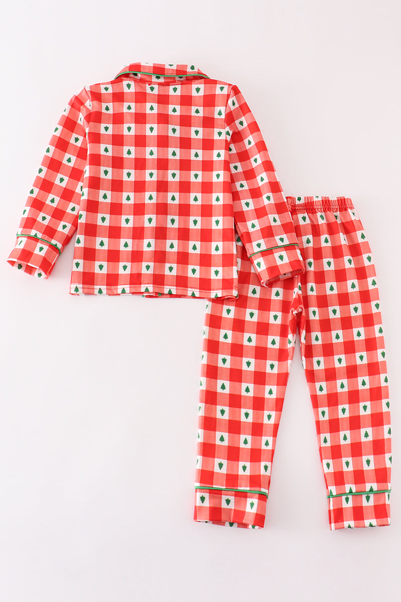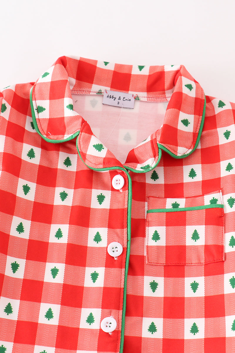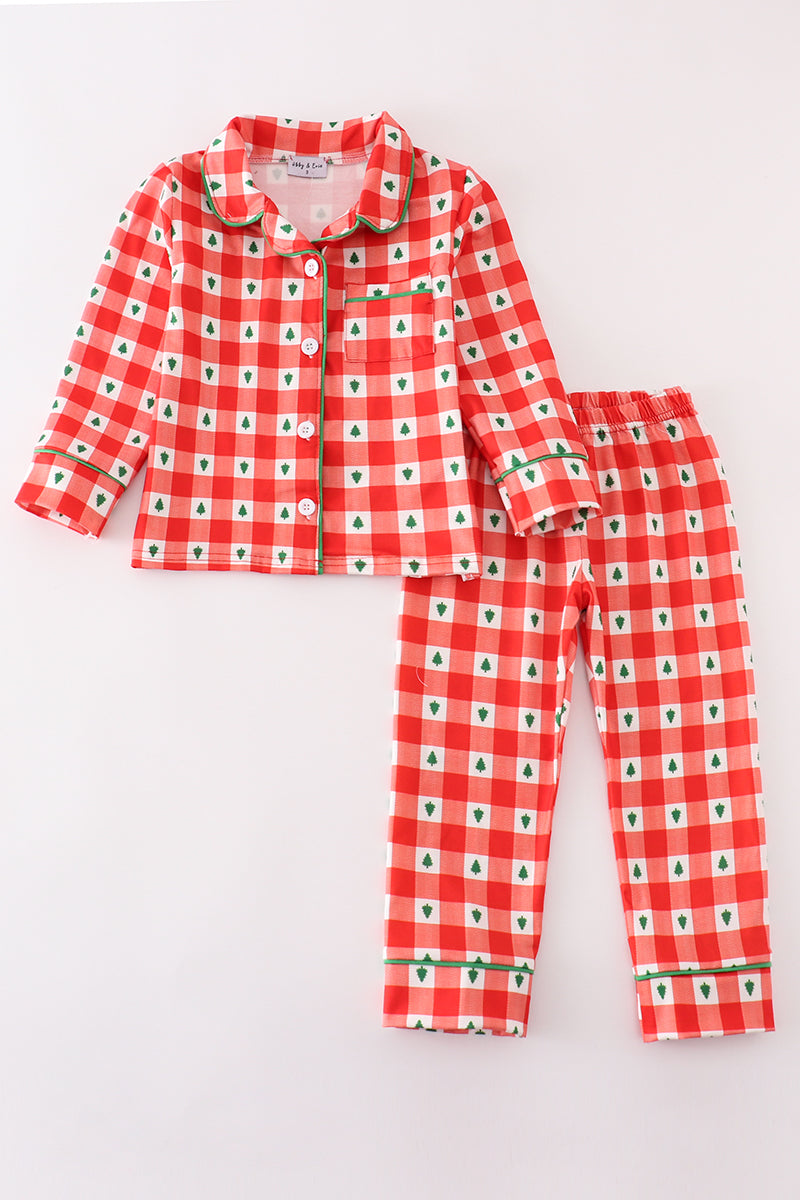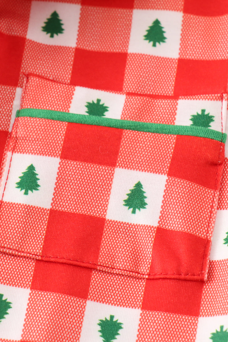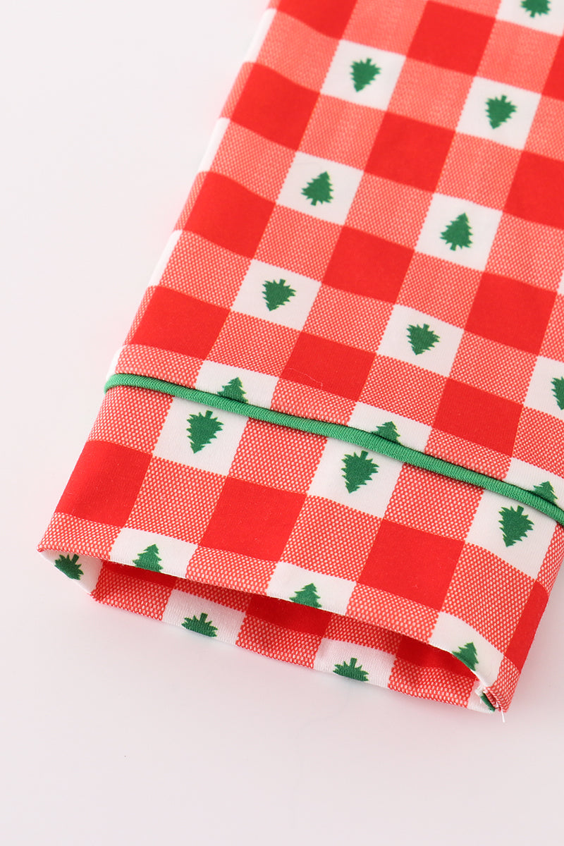 Get your little guy ready for bed in style with our festive Red Christmas Tree Gingham Boy Pajamas Set. The red gingham print mixed with a fun Christmas tree design will have him looking cute and cozy. Perfect for the holiday season or any chilly night! (Warning: may induce uncontrollable holiday cheer.)