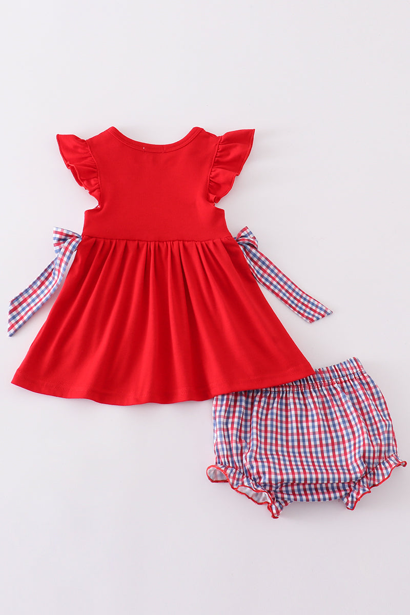 Be the cutest rebel on the block with the red ole miss embroidery girl bloomer set! Featuring a playful, embroidered design, this set is perfect for your little one to rock in style. Let her show off her unique personality and love for Ole Miss in this fun and quirky outfit. Go Rebels!