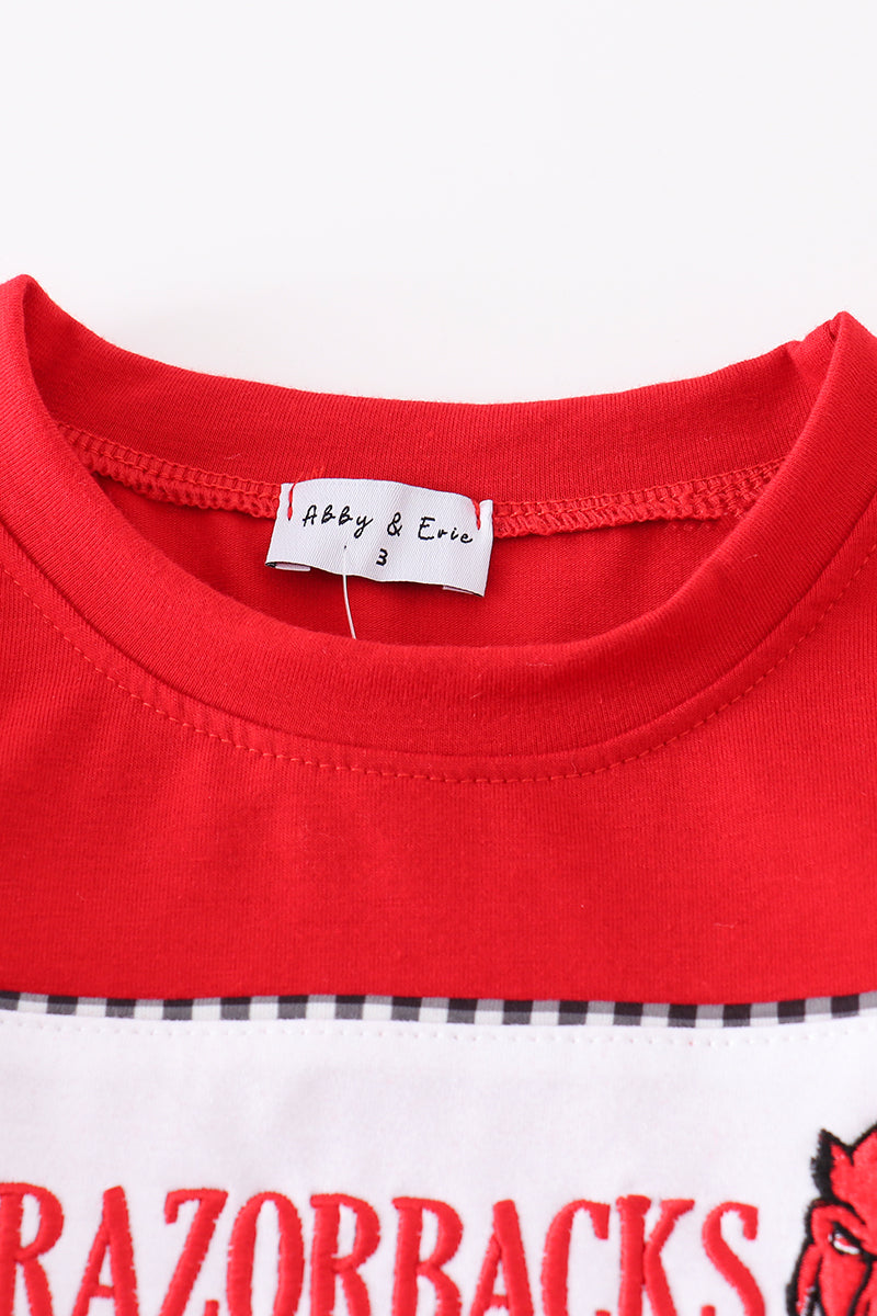 Get ready to show off your little one's style with our Red Razorbacks Applique Boy Set! This set includes a vibrant red top with a fun razorback applique and coordinating bottoms. Perfect for playtime or a casual outing, this set will keep your little guy comfortable and looking stylish all day long. Go Razorbacks!