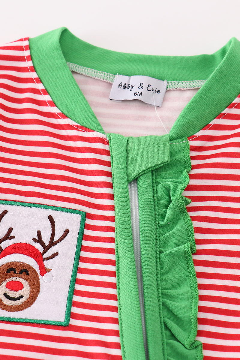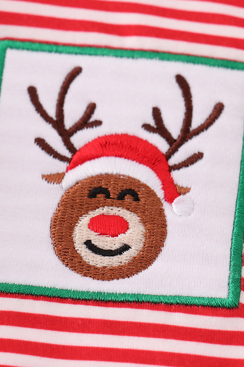 Get ready for a holly jolly Christmas with our Red Stripe Christmas Reindeer Romper. This adorable romper features a festive red stripe design and charming reindeer embroidery. Perfect for your little one to spread holiday cheer!