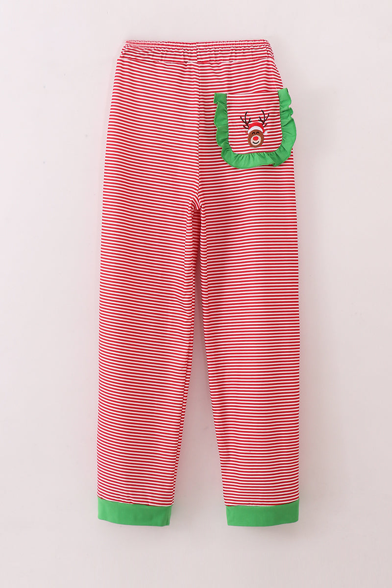 Get festive and cozy with these red stripe Christmas reindeer embroidered pajama pants for women. With a playful design and comfortable fit, these pants are perfect for lounging or sleeping during the holiday season. Spread joy and cheer with these quirky pajama pants!