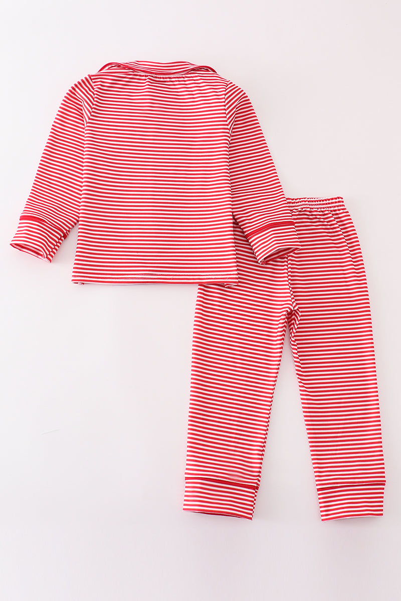 Get your little one ready for the holiday season with our festive Red Stripe Christmas Santa Claus Embroidery Boy Pajamas Set! With a playful red stripe pattern and cute Santa Claus embroidery, this set is perfect for cozy family nights by the fire. Get yours now!
