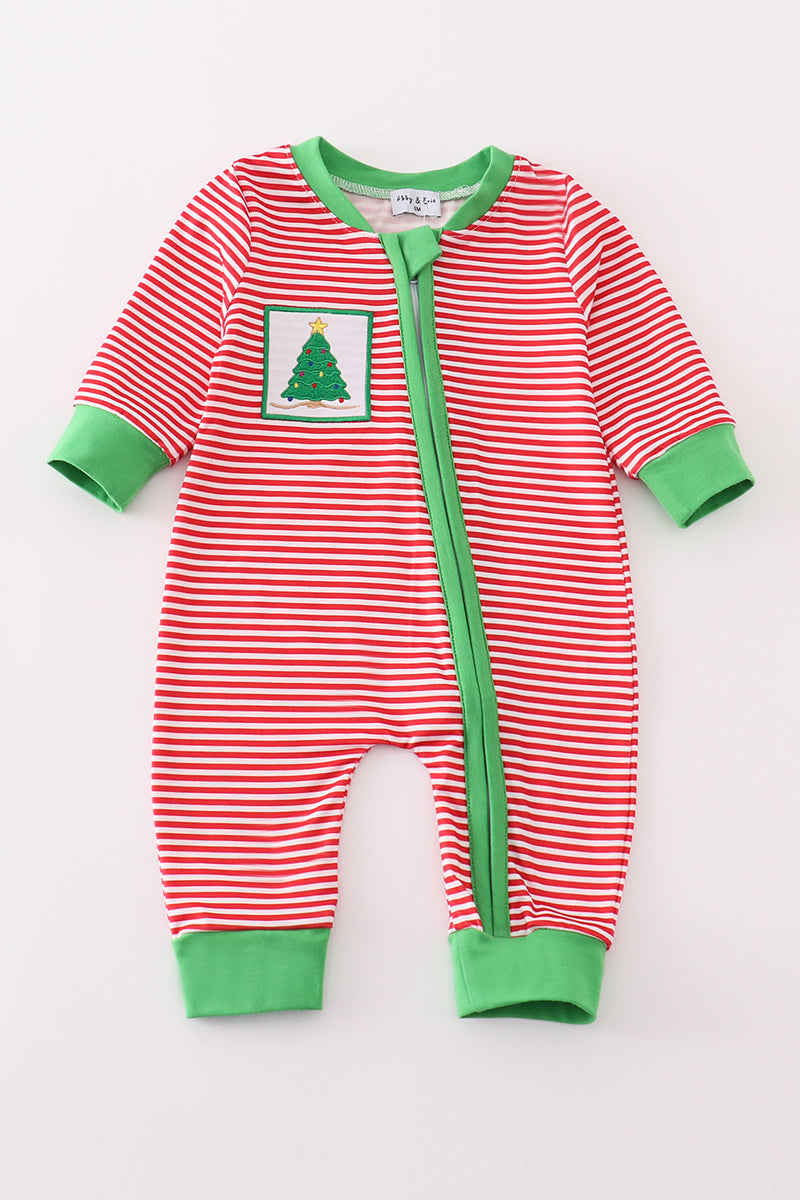 Deck the halls with this charming red stripe Christmas tree embroidery boy romper! Perfect for festive family photos and holiday gatherings, this romper adds a touch of holiday cheer to any occasion. Playful and stylish, your little one will be the talk of the town in this quirky and fun romper.