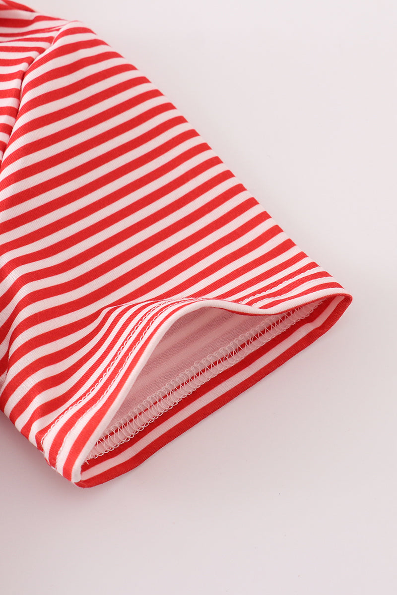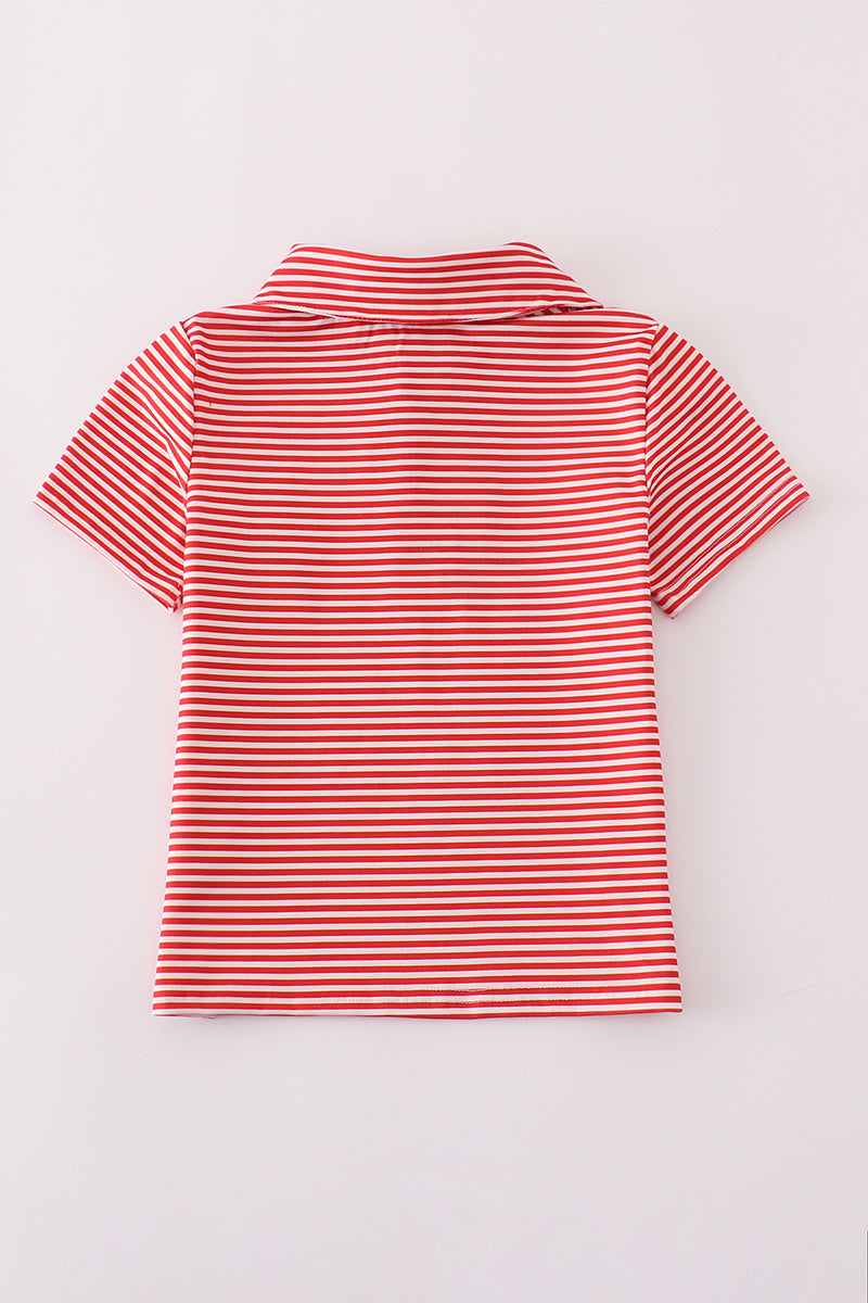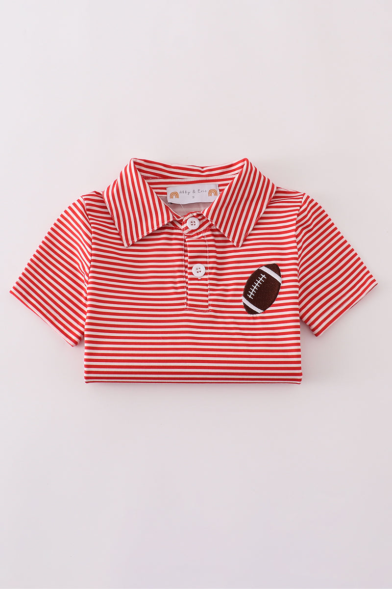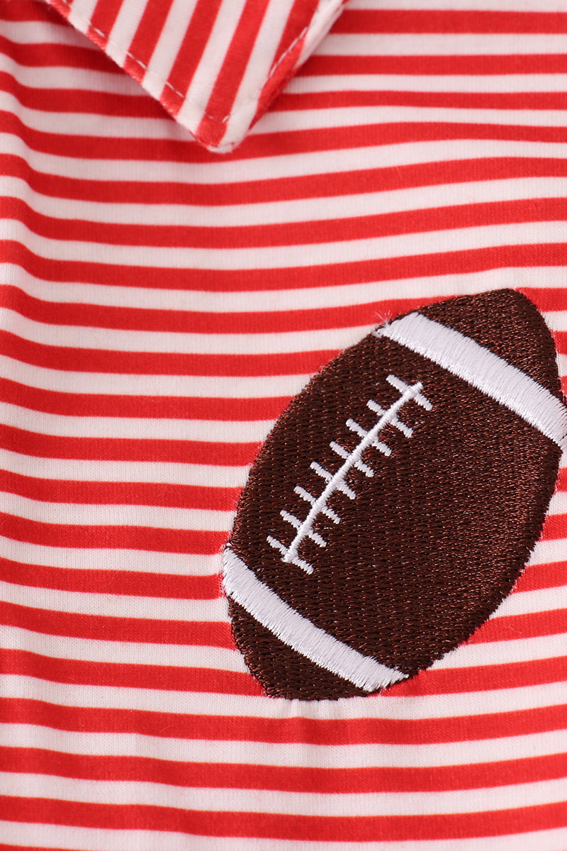 This shirt is perfect for any football fan! The red stripes add a sporty touch, while the football embroidery adds a fun and unique element. With a button down design, it's both stylish and comfortable. Show off your love for the game in this quirky and playful shirt.