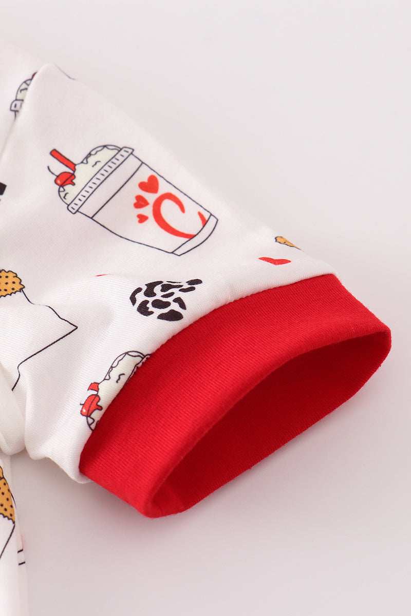 Red the lord's chicken print boy romper