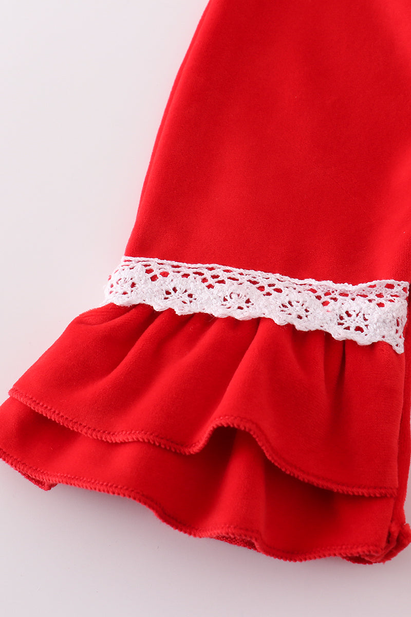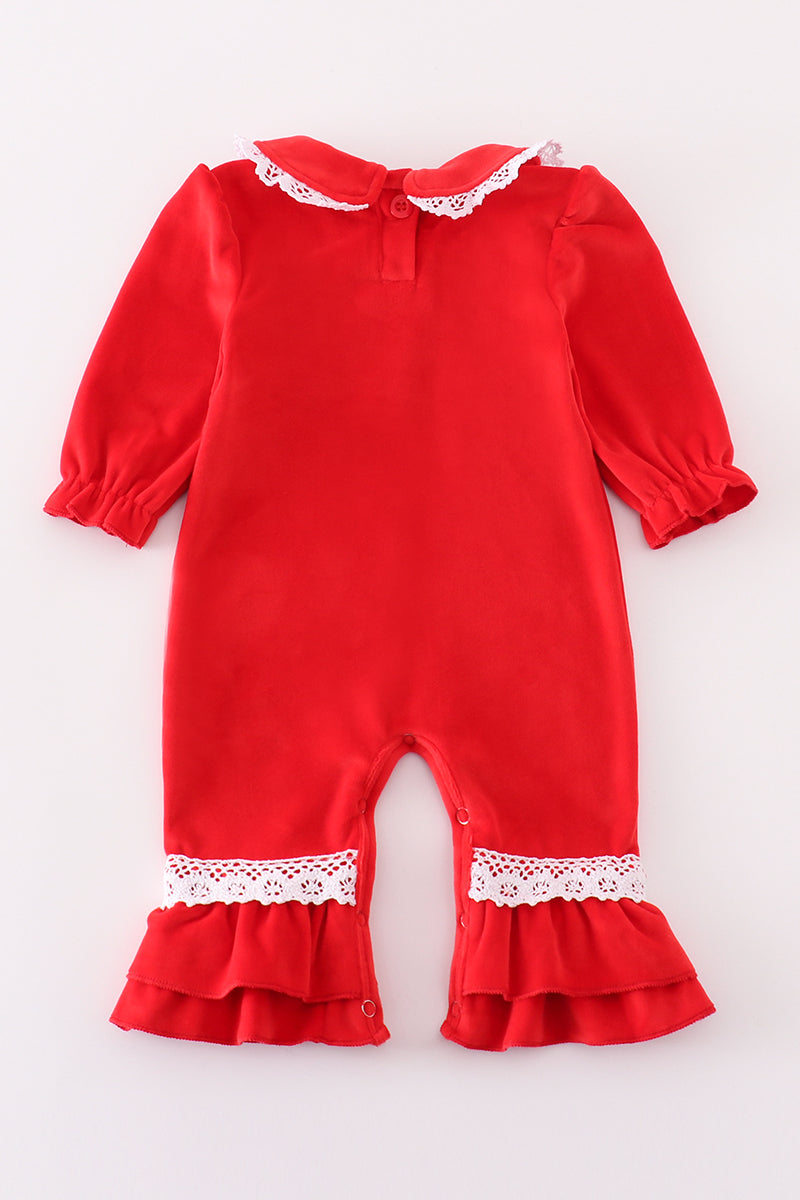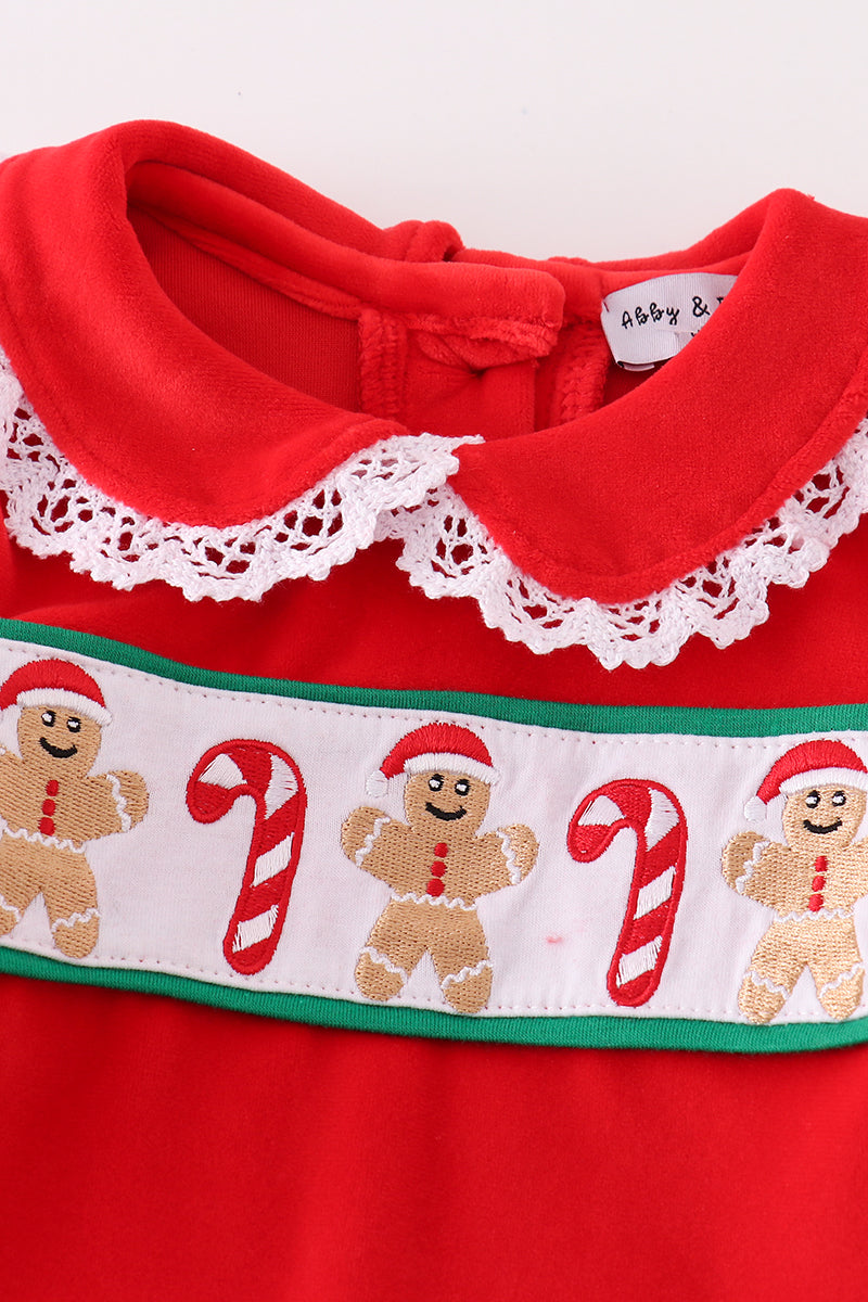 Red velvet christmas gingerbread embroidery girl ruffle romper