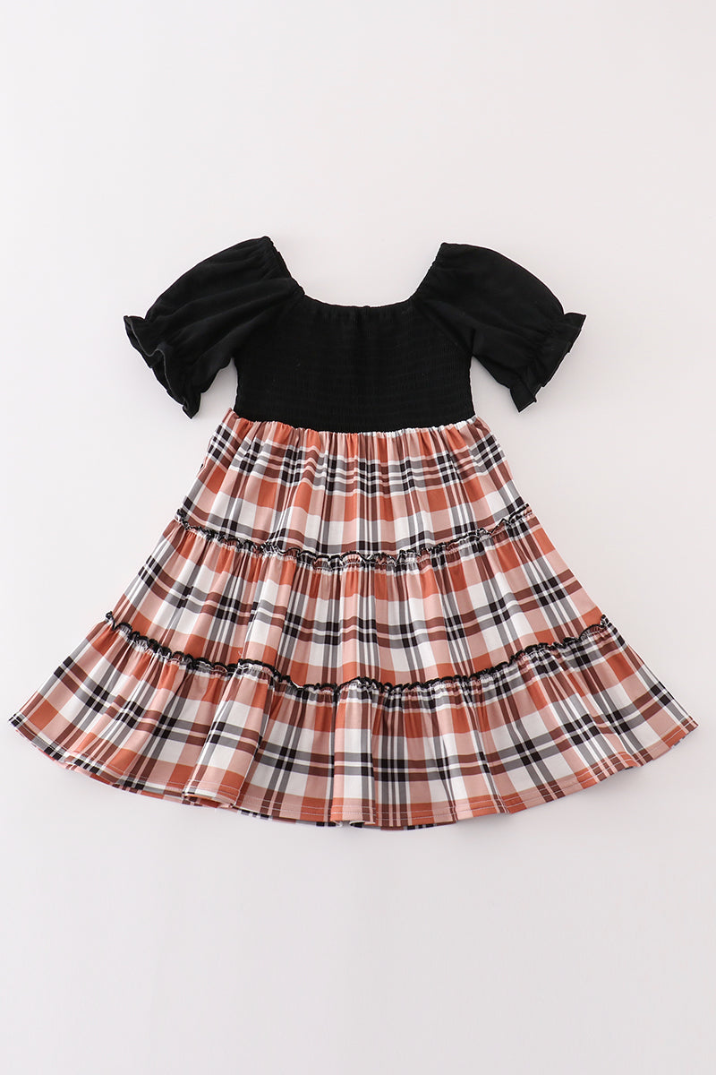Get ready to rock the rust plaid look with our smocked dress! Perfect for the fashion-forward girl, this dress features a unique smocked design that adds playful texture to the classic plaid pattern. You'll be sure to turn heads and make a statement in this fun and flirty dress.