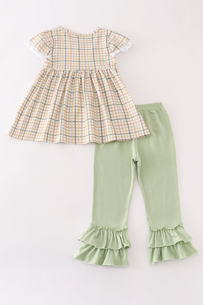 Sage pumpkin french knot girl pants set