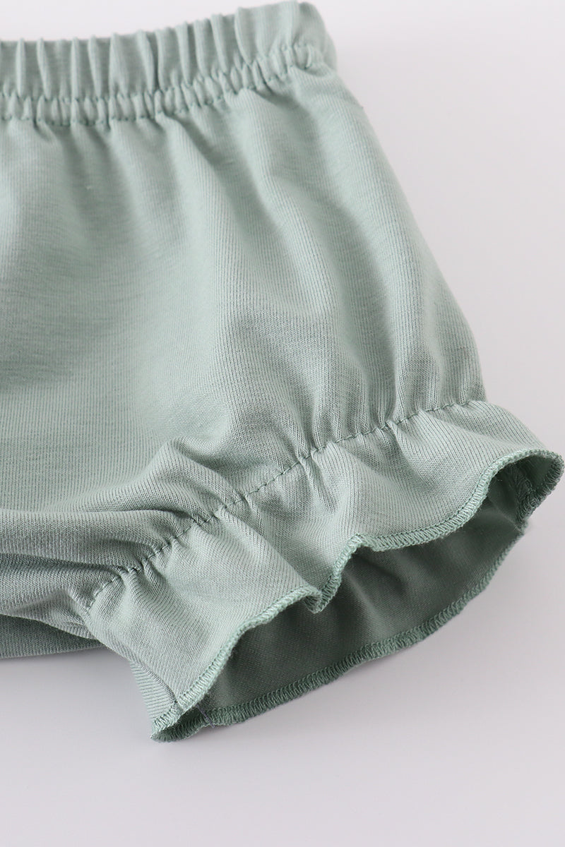 Get your little one ready for a day of fun in the sun with our Sage Sand Dollar Embroidery Smocked Girl Bloomer Set! Featuring charming sand dollar embroidery and a sweet smocked design, this set is perfect for a playful and stylish summer look. A must-have addition to any little girl's wardrobe!