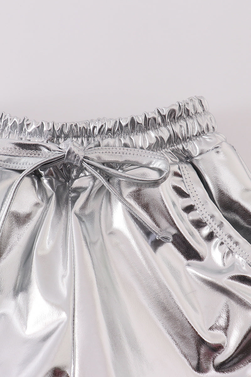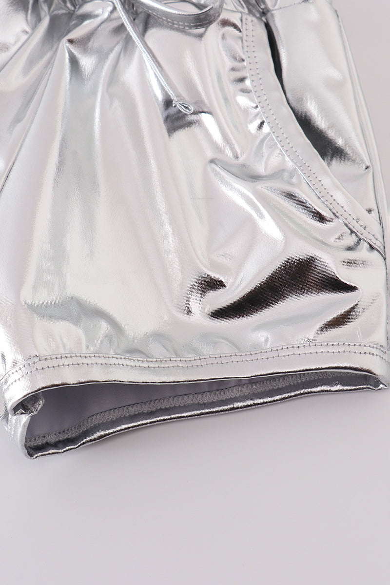 Get ready to shine with our Silver Laser Shorts! These shorts feature a unique, eye-catching silver laser design that will make you stand out from the crowd. Perfect for festivals, parties, and any occasion where you want to make a statement. Let your legs do the talking (or laser-ing) with these playful and fun shorts!