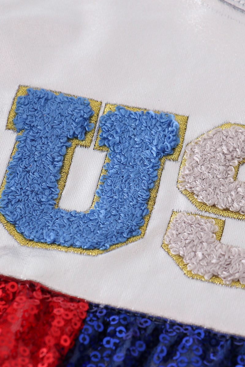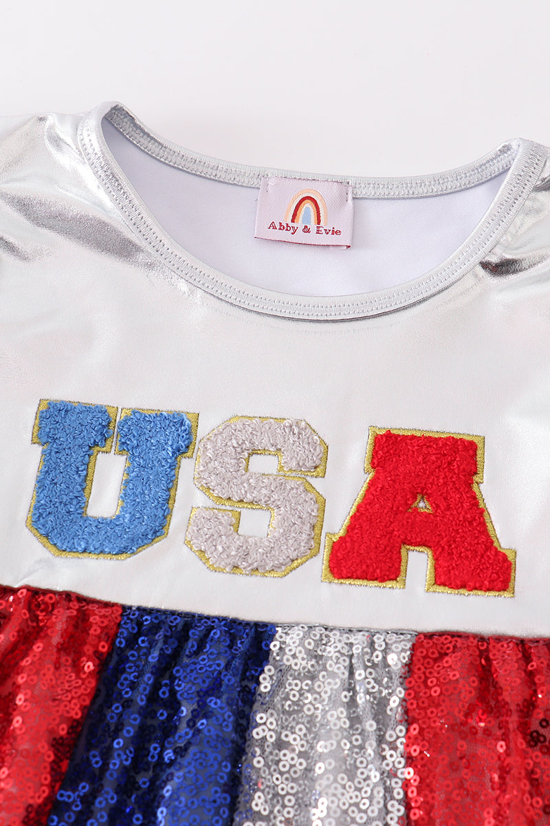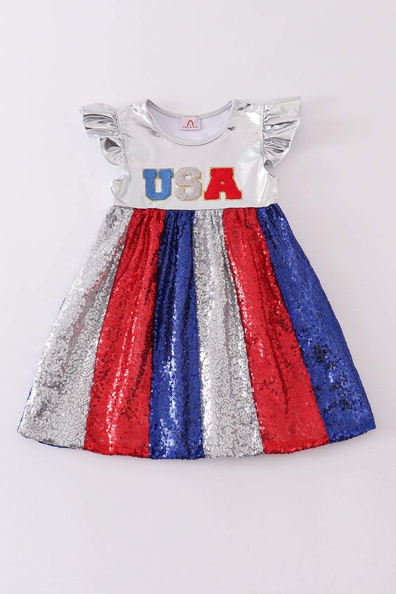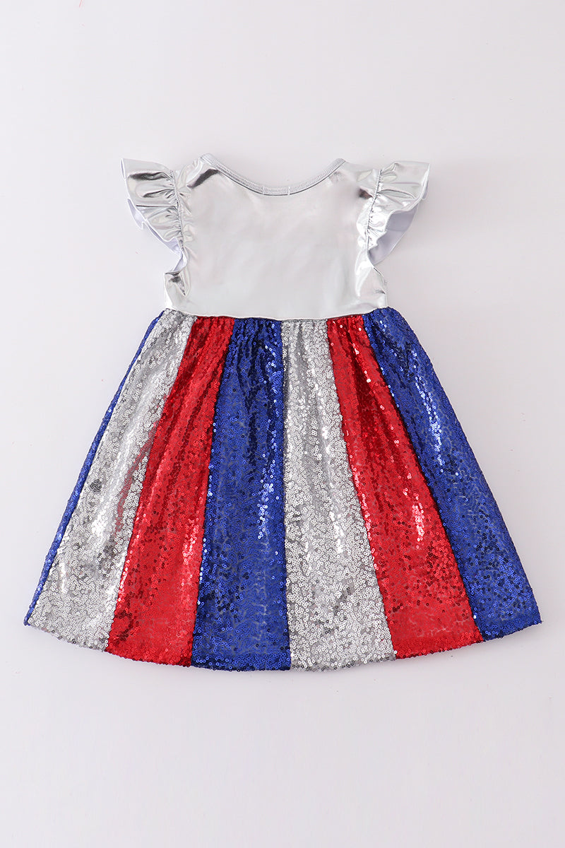 Silver Patriotic sequin ruffle dress