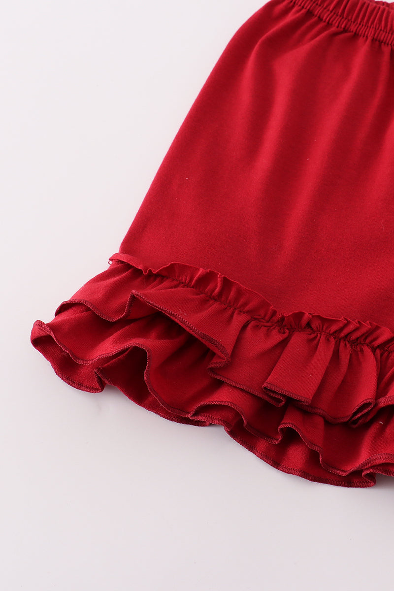 Score a touchdown in style with this South Carolina Gamecocks embroidery ruffle shorts set! Show off your team spirit with the embroidered logo while staying comfortable and chic in the ruffle design. Perfect for any game day or lounging at home. Go Gamecocks!