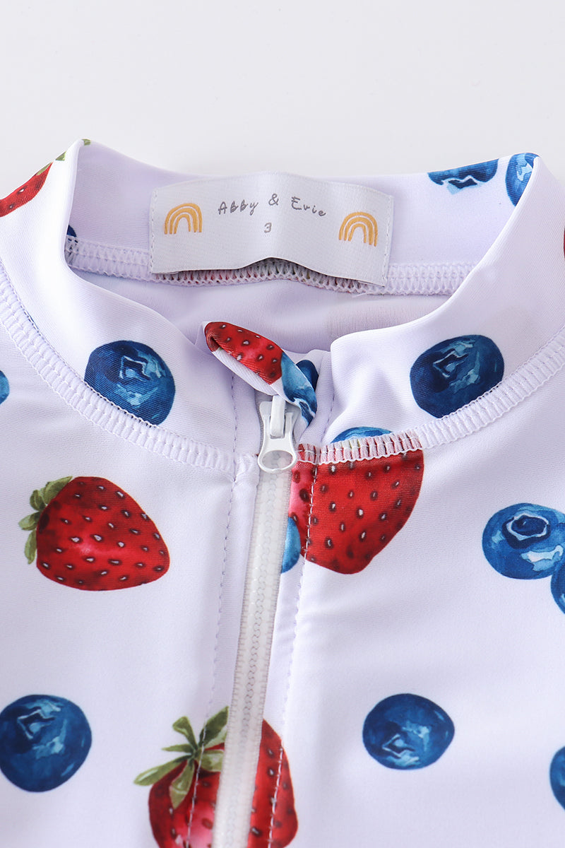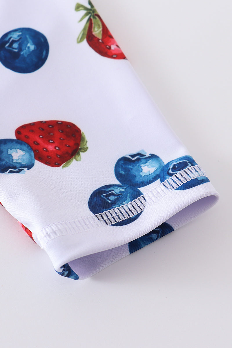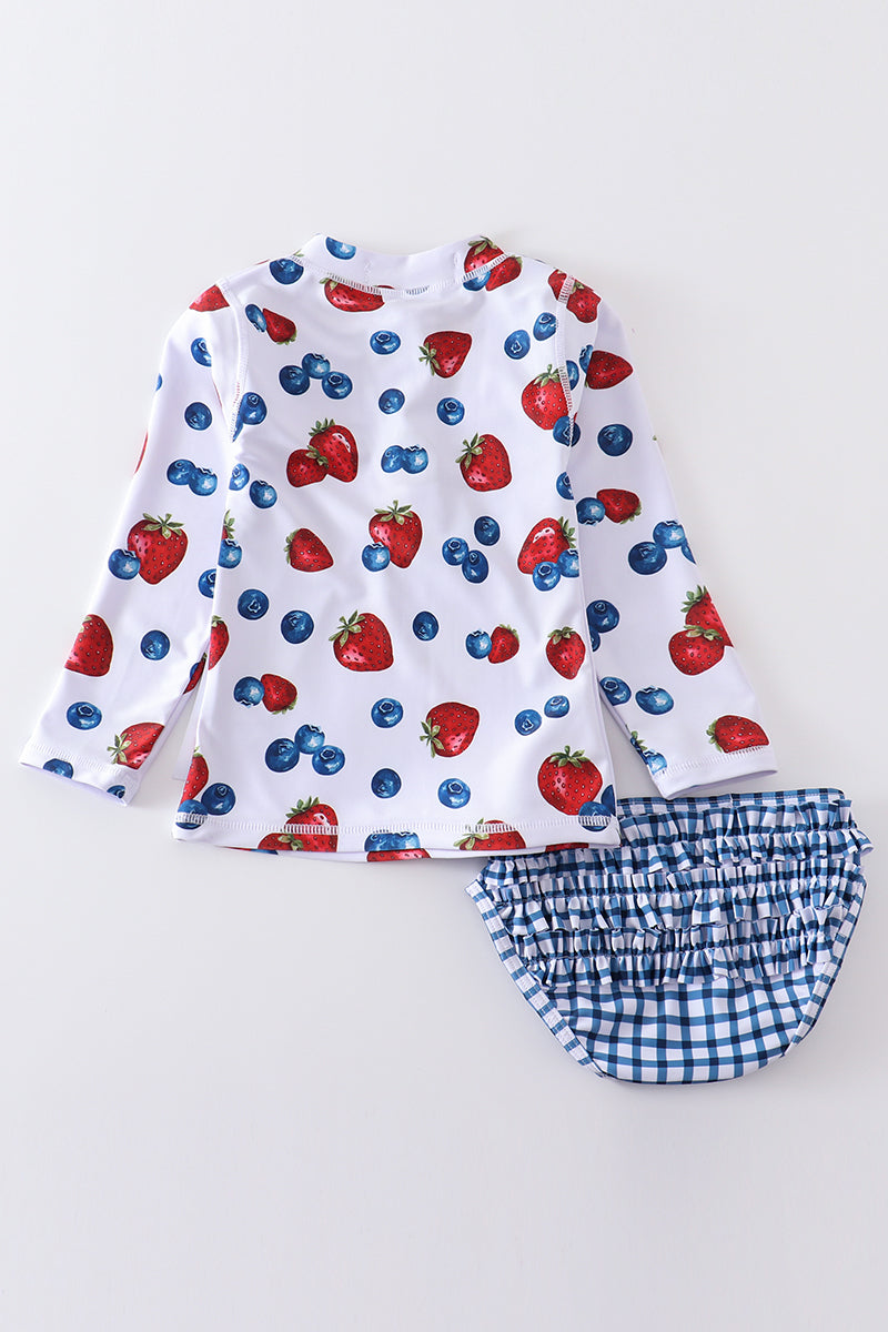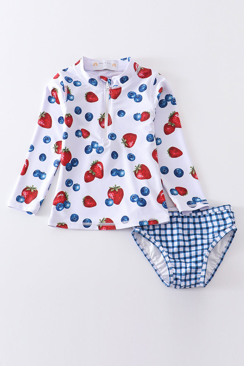 Strawberry print 2pc long sleeve rashguard swimsuit UPF50+
