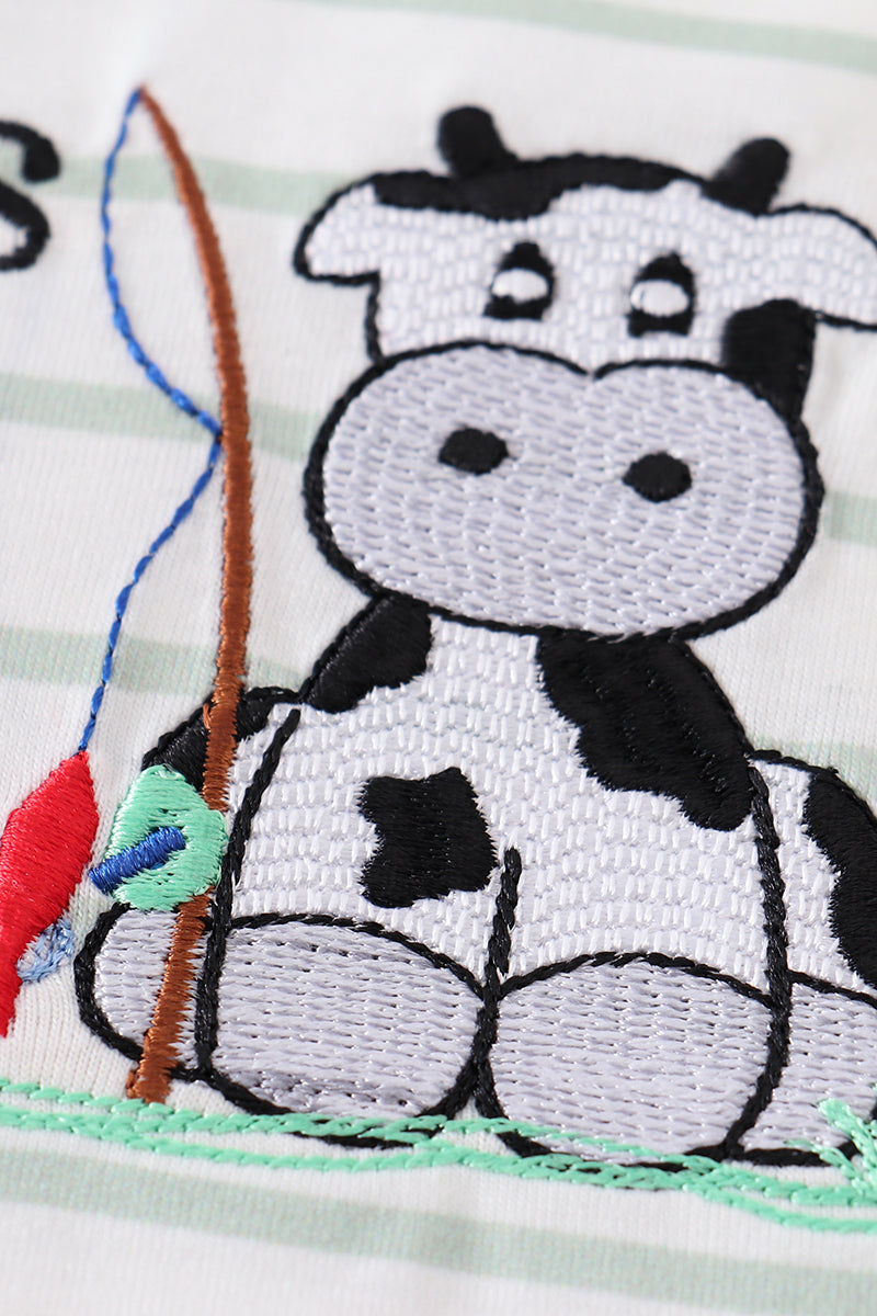 Stripe cow embroidery boy romper - SPELLING ERRORS