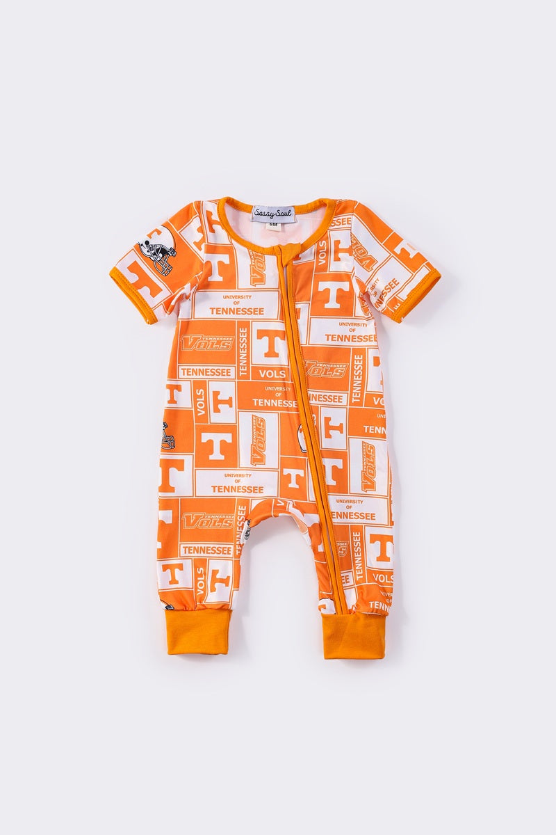 Get your little one ready for summer with this quirky Tennessee print girl romper. Made from soft and breathable fabric, this romper features an eye-catching Tennessee print. Perfect for a day at the park or a family BBQ, this romper is sure to keep your child comfortable and stylish. Yee-haw!