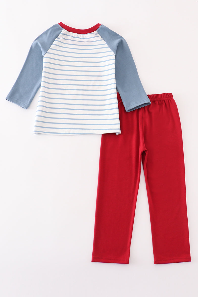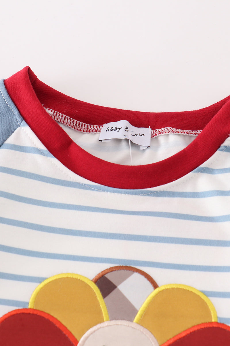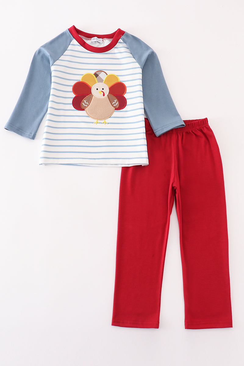 Gobble up the compliments with this festive Thanksgiving turkey fleece applique boy set! Your little one will stay warm and stylish in this quirky and fun outfit. Perfect for family gatherings and photos. (Warning: may cause turkey cravings).