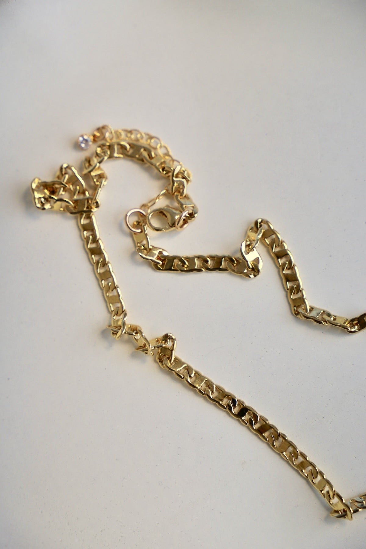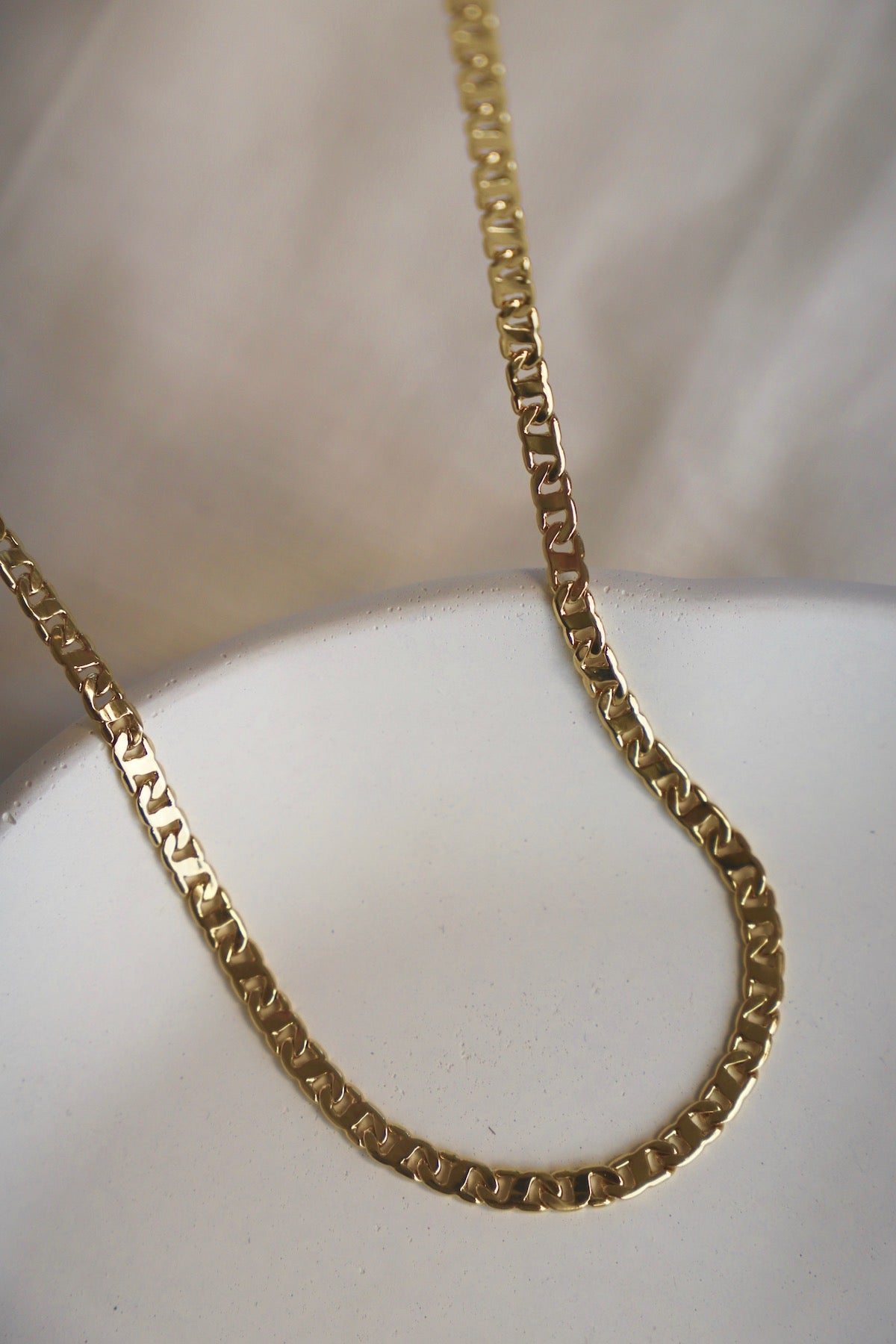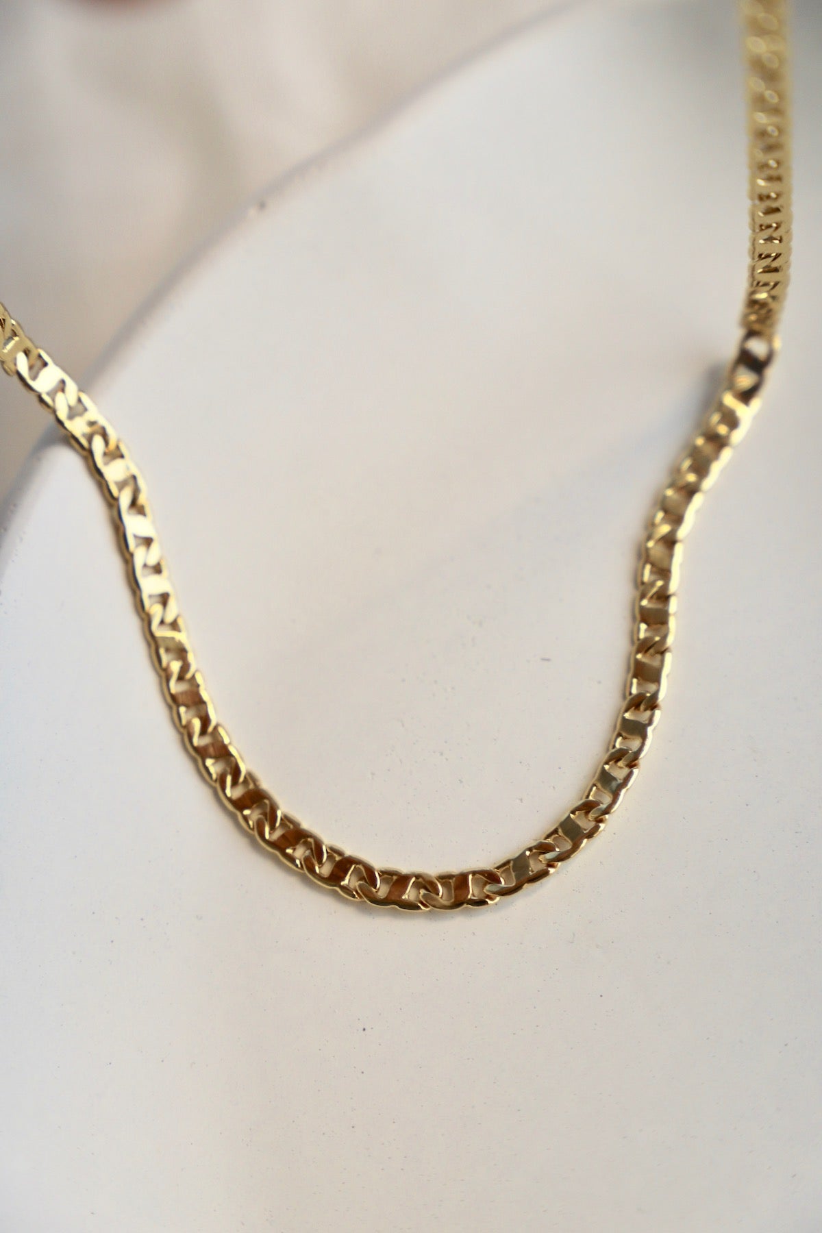 This necklace is a classic chain in a refreshed style. It sits beautifully by itself or layer it with other chains to create a dimensional look.