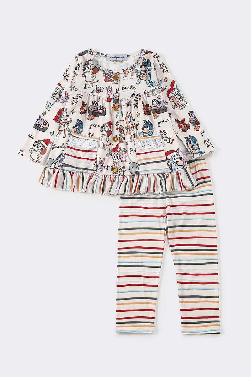 White christmas character print girl set
