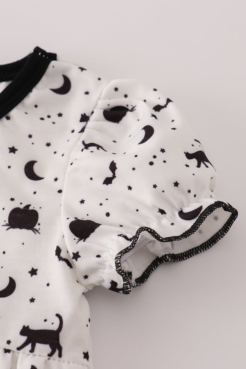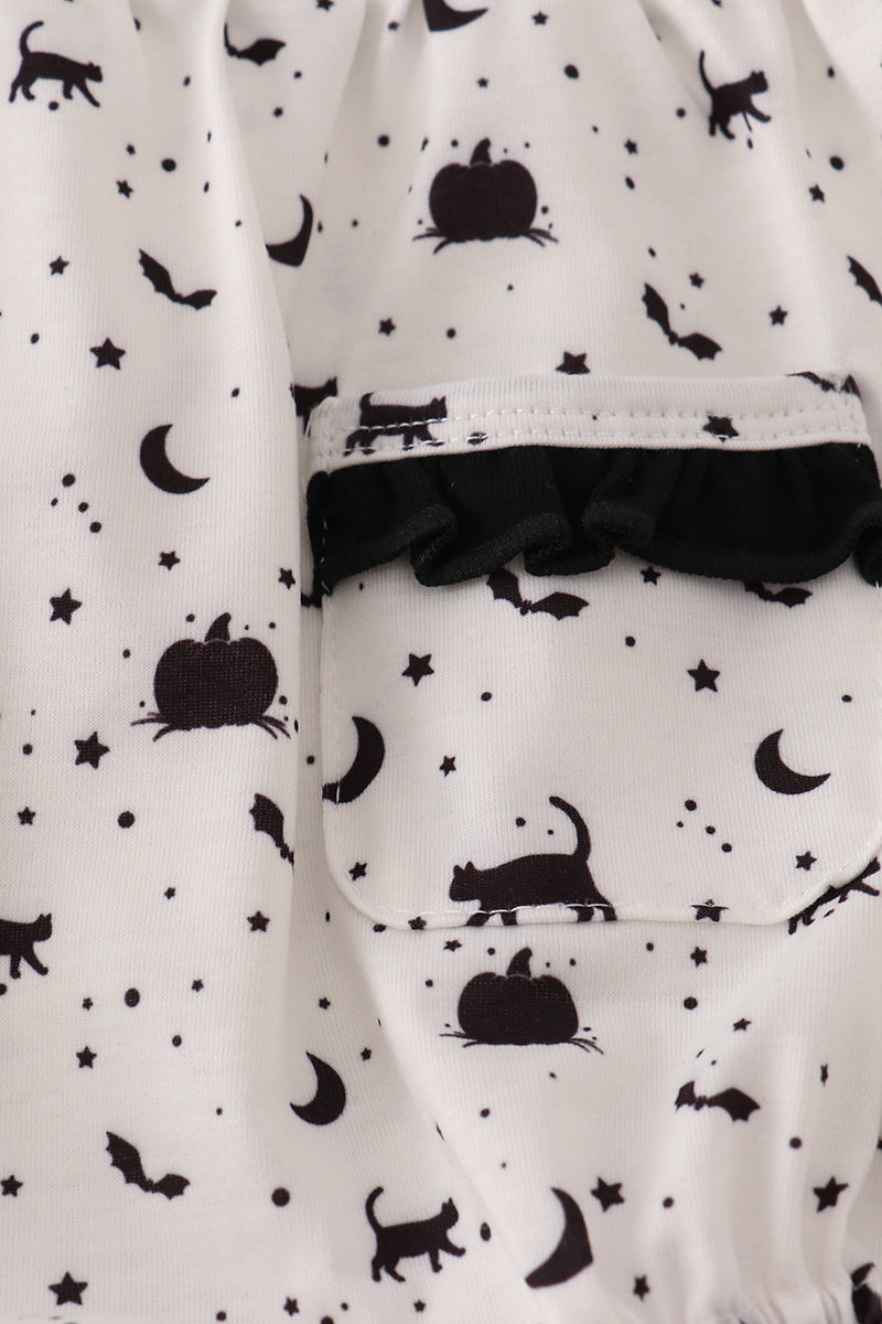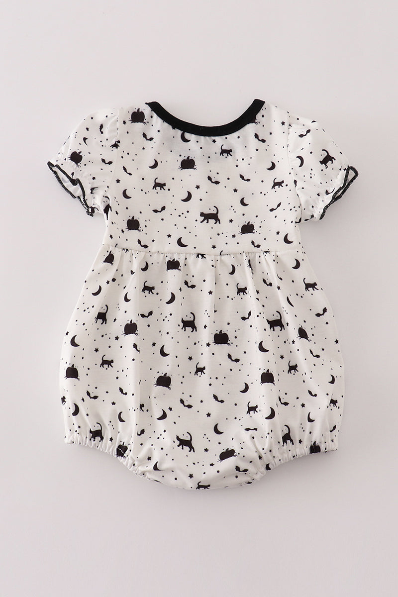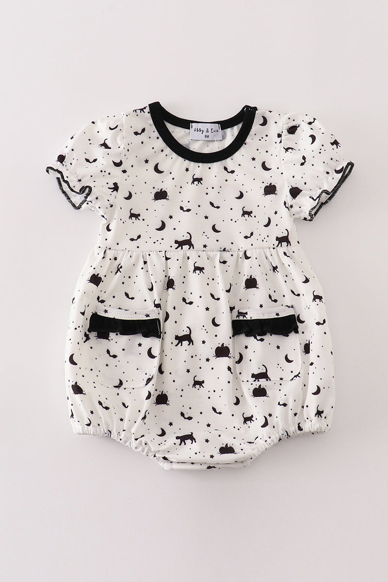 Celebrate Halloween in style with our White Halloween Girl Bubble! This playful and unique romper is perfect for your little one's costume or for a day of trick-or-treating. With its eye-catching white color and festive halloween girl graphic, your child will stand out in the best way possible.
