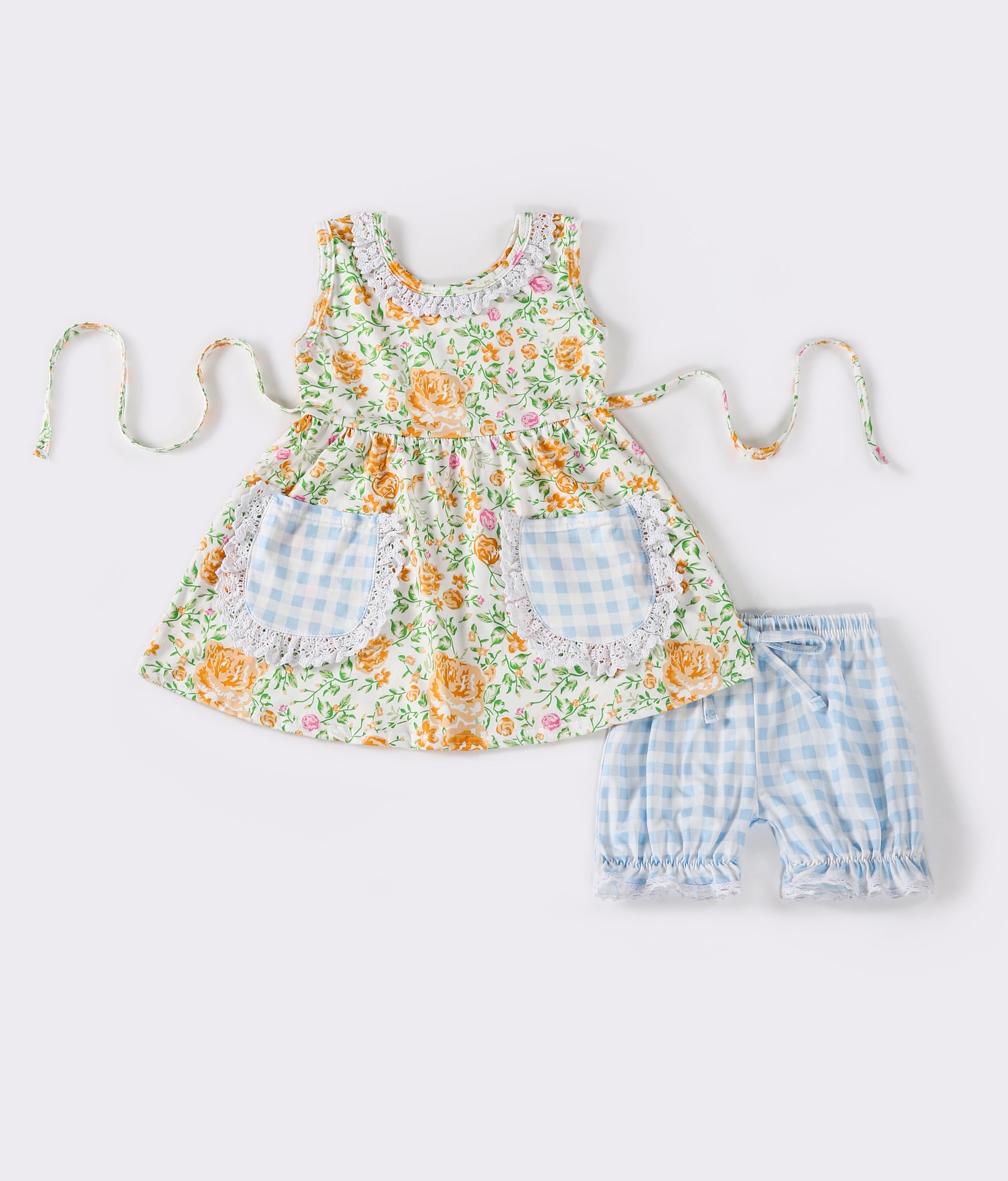 Yellow floral plaid girl shorts set