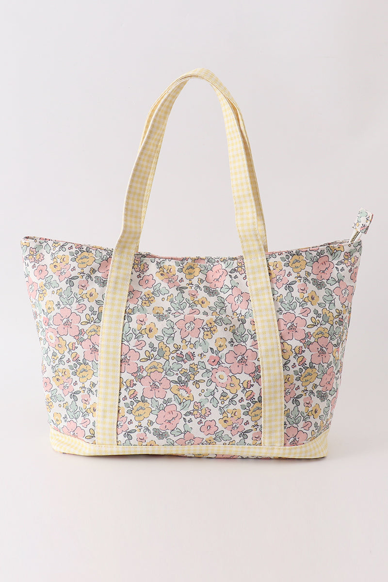 Add some playful charm to your everyday ensemble with our Yellow Floral Plaid Tote Bag! This vibrant bag features a unique mix of floral and plaid patterns, making it a fun and stylish addition to any outfit. With plenty of room for your essentials, this tote is perfect for any adventure!