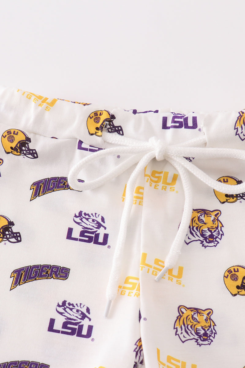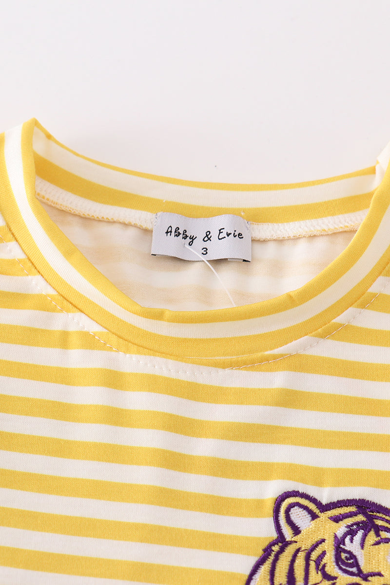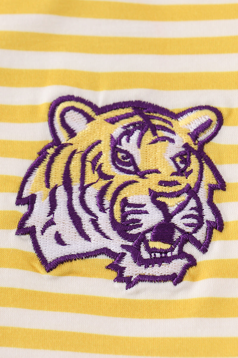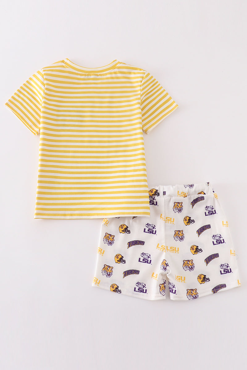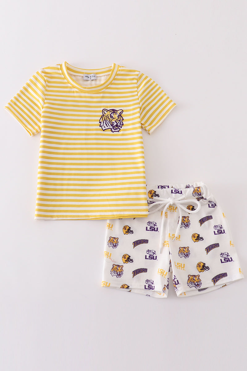 Yellow tiger embroidery LSU boy set